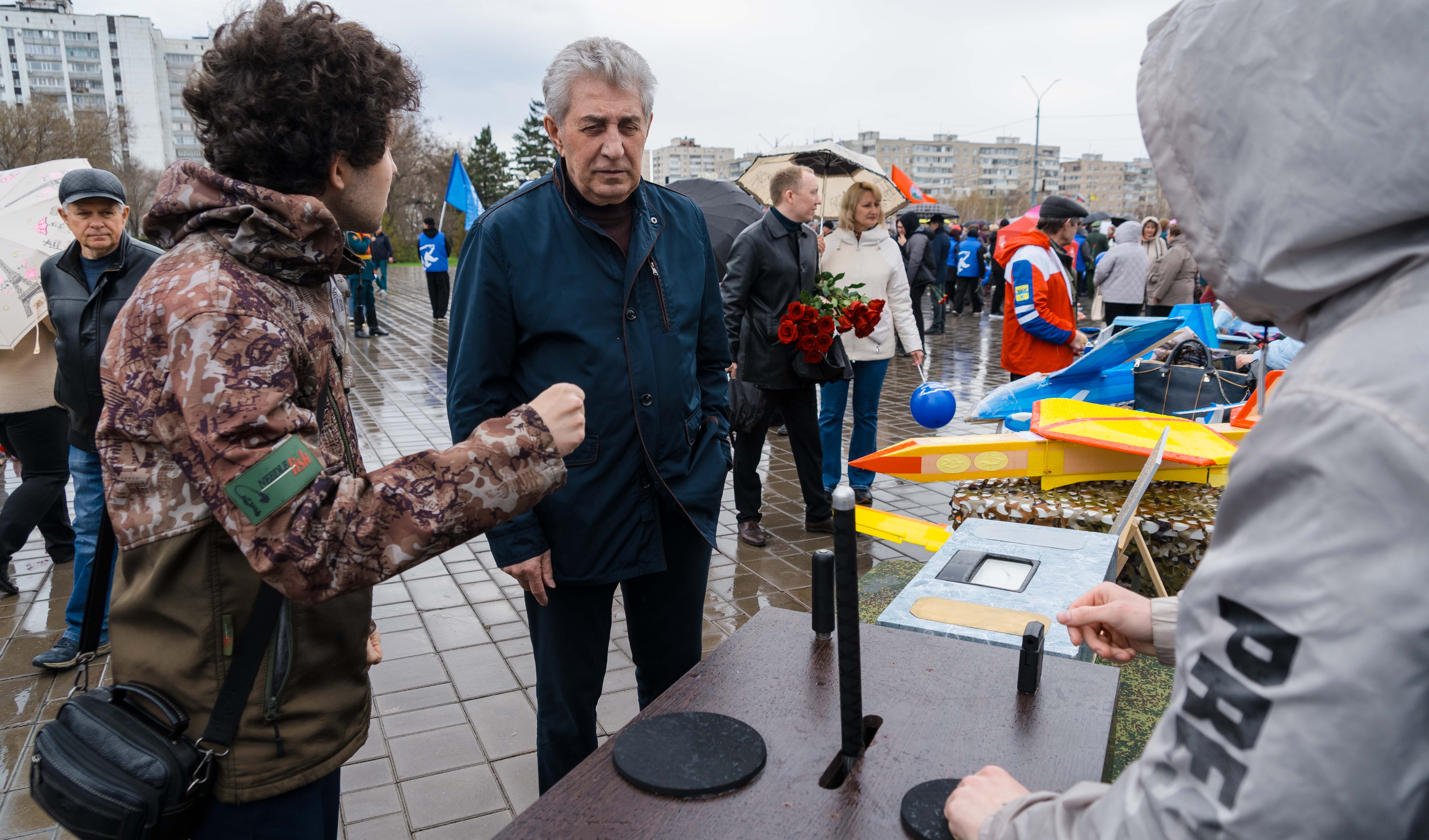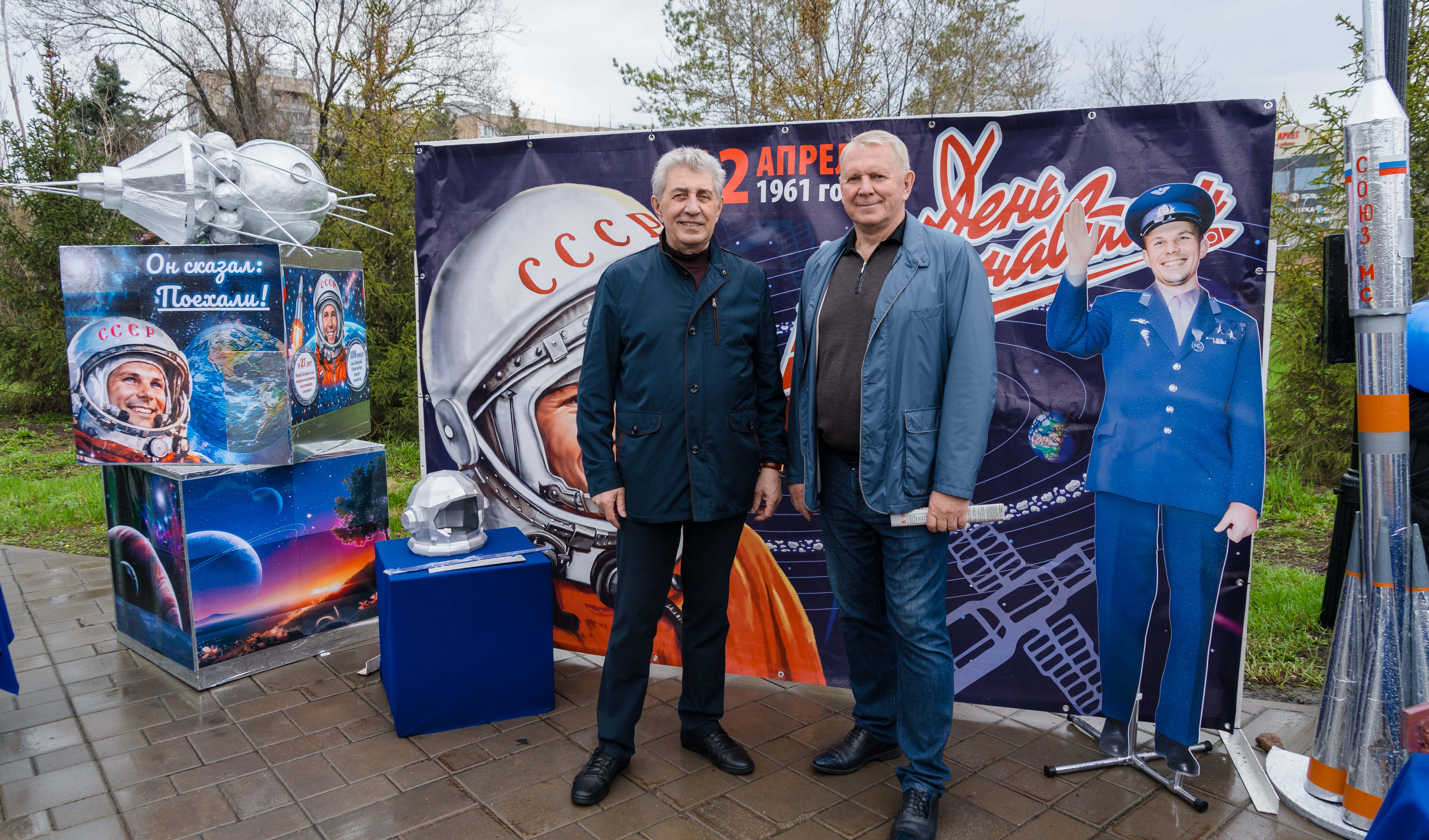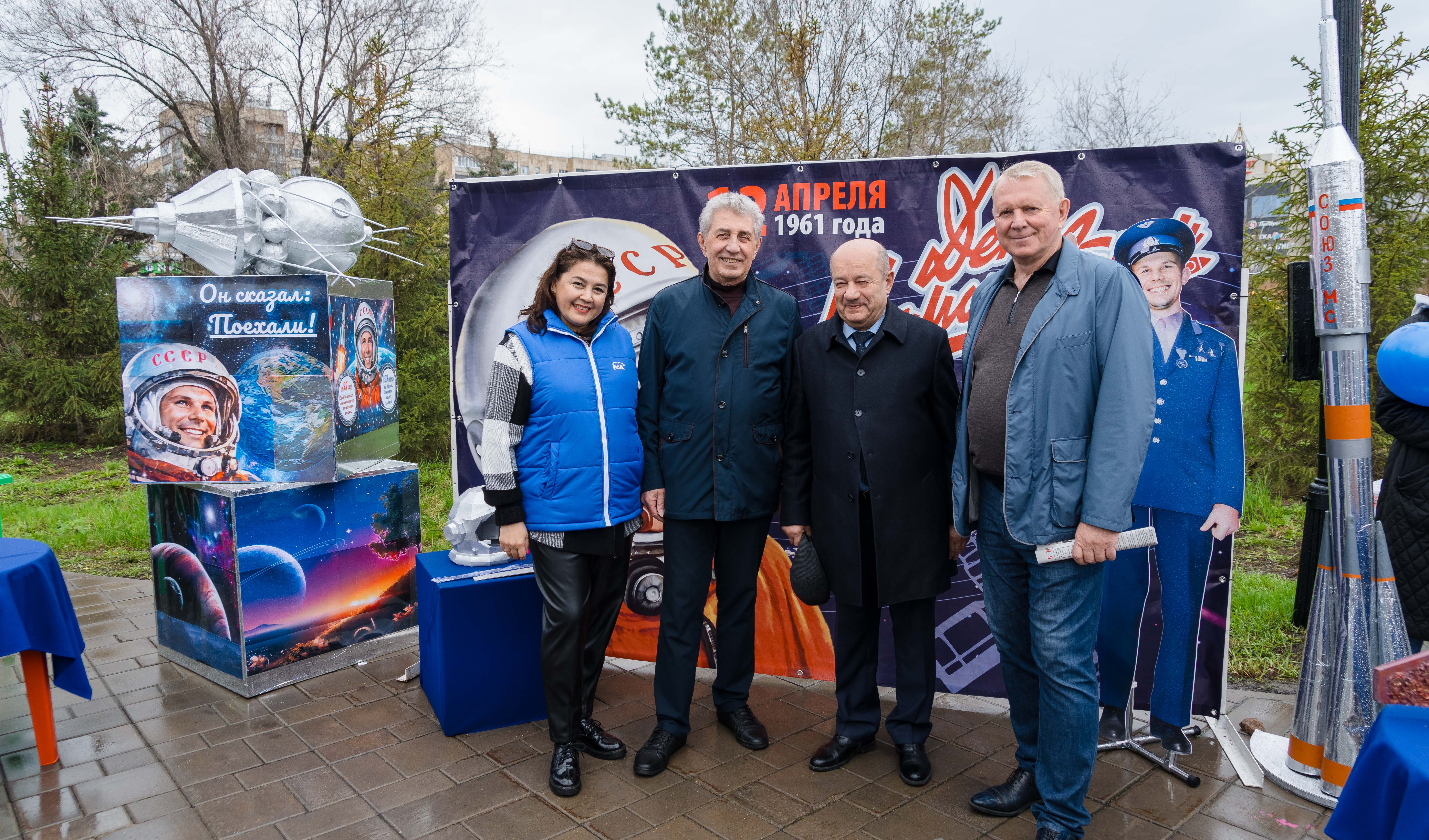 Возложение цветов, торжественный марш кадетов, выставка об истории освоения космоса и современных достижениях.