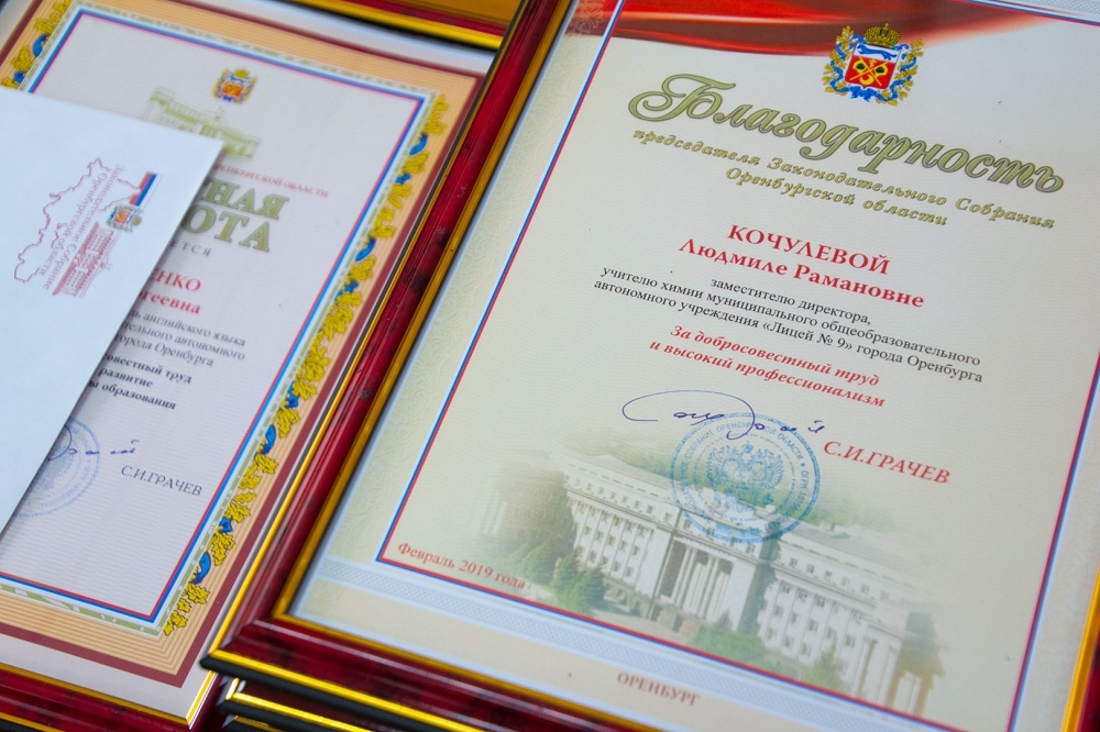 Торжественной частью мероприятия стало вручение Почетных грамот и Благодарностей председателя Законодательного Собрания Оренбургской области С.И.Грачева педагогам образовательных учреждений избирательного округа № 14. В церемонии награждения приняла участие начальник управления образования администрации города Оренбурга Н.А.Гордеева.