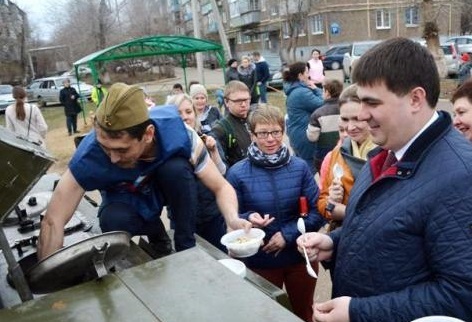 На площадке работала полевая кухня, была организована концертная программа с участием хореографических и вокальных коллективов города, которые исполнили песни и танцы военных лет.