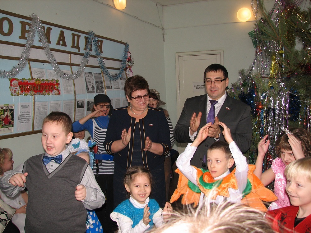 В хоровод у новогодней ёлки встали не только пришедшие на праздник ребятишки и их родители, но и гости. Депутаты пели вместе с малышами знакомые всем с детства песни, участвовали в веселых конкурсах, раздавали призы и подарки.