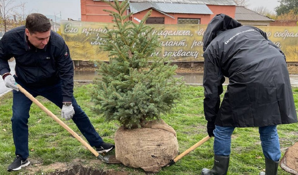Сквер им. Коваленко в областном центре украсили голубые ели. Озеленение территории прошло в рамках осеннего месячника по уборке города.