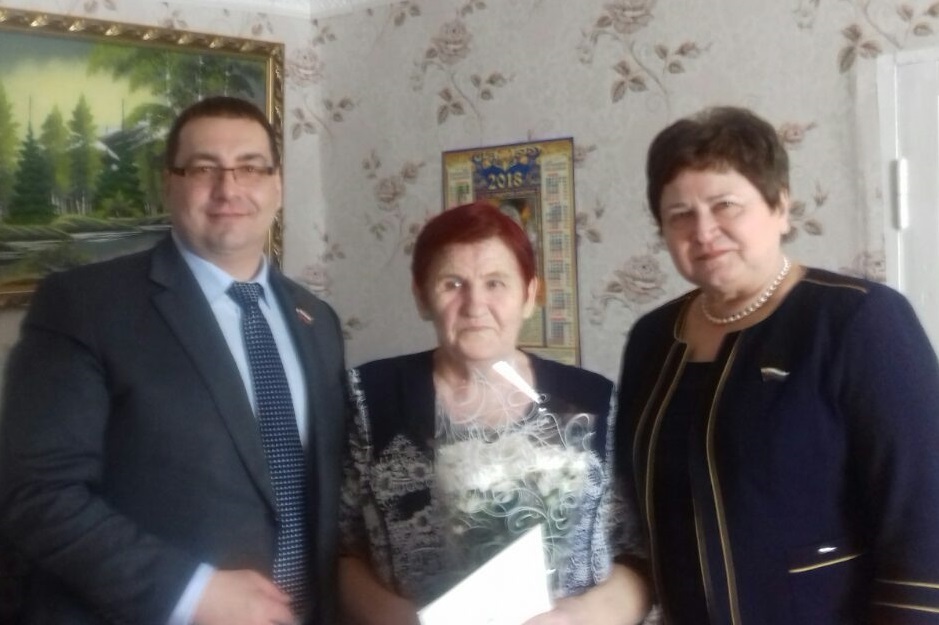 Поздравления с днем рождения в этот праздничный день от депутатов принимала и жительница села Бурдыгино Сорочинского городского округа Красикова Анна Феодосовна, которая является кавалером 3-х орденов Славы. Анне Феодосовне были вручены памятные подарки и цветы.