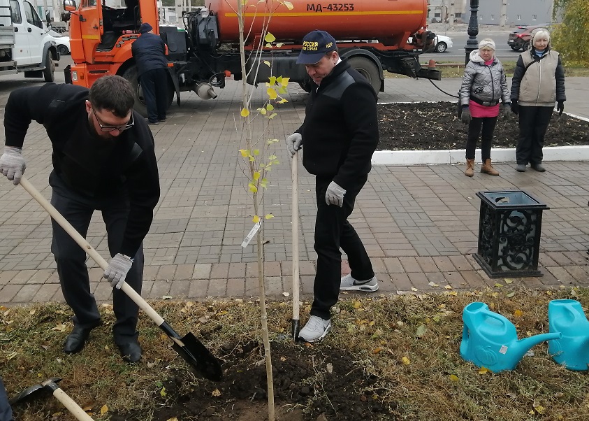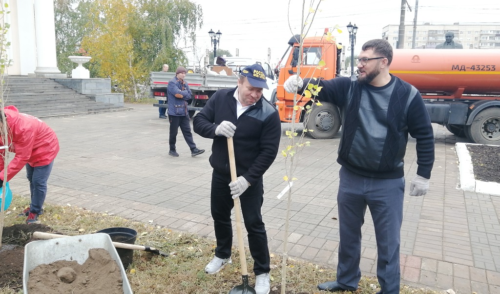 К акции по озеленению города присоединились и депутаты от фракции ЛДПР Максим Щепинов и Иван Дубинин. Они высадили пирамидальные тополя.