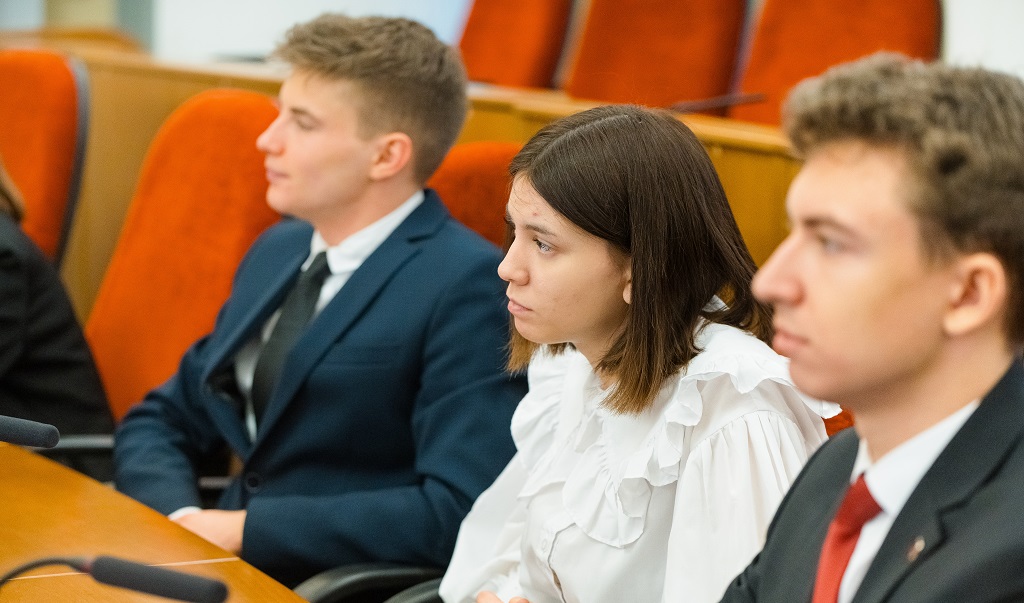 Студенты юридического факультета услышали историю областного парламента, узнали о его структуре, о том, как он формируется, сколько в нем комитетов и комиссий. Молодых людей интересовали вопросы законотворческой практики, компетенций и полномочий Законодательного Собрания и, конечно, как стать членом Молодежного парламента.