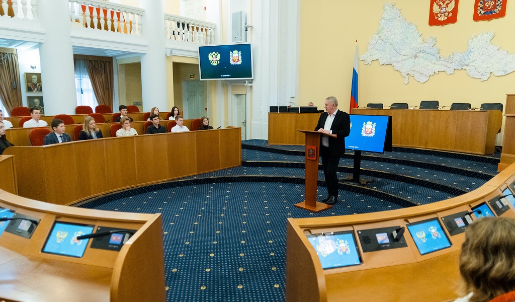 – Процесс формирования законодательной власти в Оренбуржье проходил в рамках созданной к концу 1993 года правовой базы, направленной на организацию принципиально новых структур власти. Принятие новой Конституции страны предопределило роль, место и функции органов законодательной власти субъектов Российской Федерации. Первый состав Законодательного Собрания области был сформирован после выборов, состоявшихся 20 марта 1994 года. И в наступающем 2024 году областной парламент отметит свое 30-летие, – сообщил студентам Александр Куниловский.