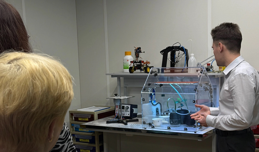 Экскурсанты побывали в лаборатории физиологии и инженерно-биологических систем, посмотрели, как создаются видеофайлы с использованием компьютерных технологий. Такие форматы позволяют обучающимся лучше освоить материал. Внимание детей привлекли «плащ-невидимка» и уникальная доска, которая используется для написания текстов и рисования «поверх видеороликов». Большой интерес вызвали интерактивный анатомический стол и процесс получения 3D-моделей.
