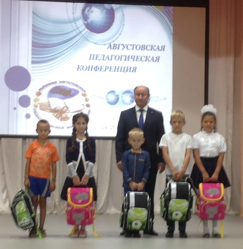 В районе продолжается акция «Соберем ребенка в школу», в рамках которой депутат подарил детям из малообеспеченных семей школьные ранцы.