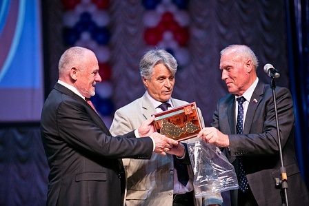 Депутаты Законодательного Собрания Александр Жарков, Александр Коньков и Анатолий Лукьянов поздравили своего коллегу по работе в парламенте региона Ивана Дикмана с 75-летием предприятия «Городской торг», которое он возглавляет.