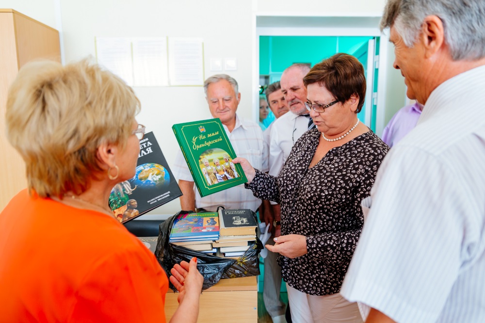 От имени областного Совета женщин председатель комитета Законодательного Собрания по социальной и демографической политике Ольга Хромушина передала в школьную библиотеку книги.