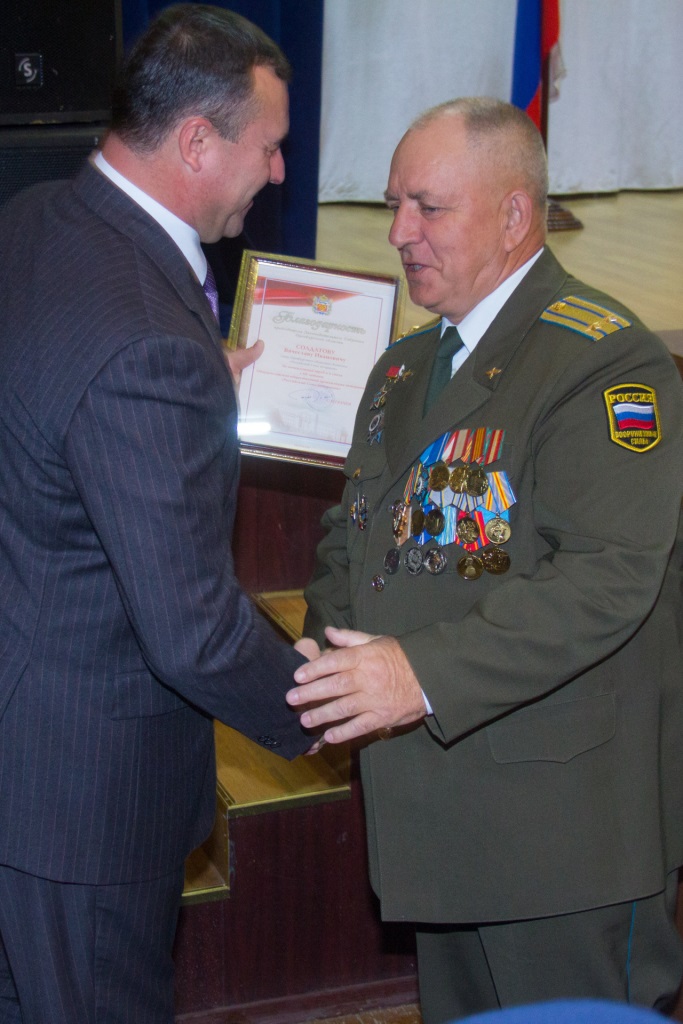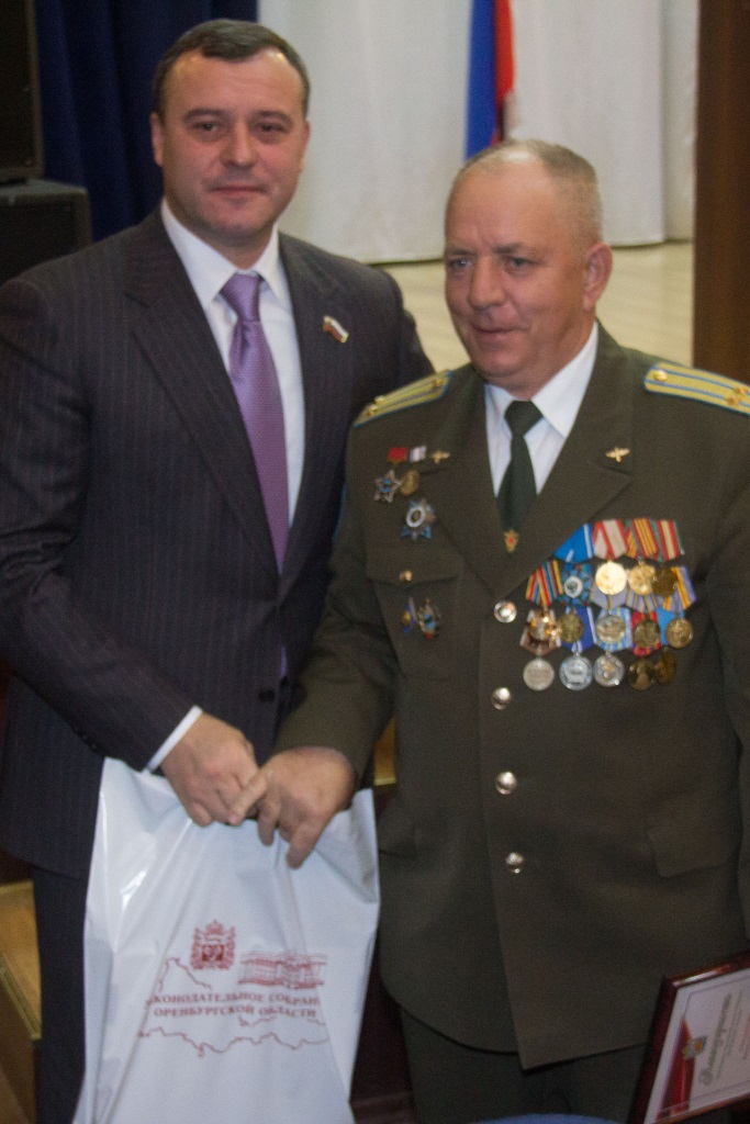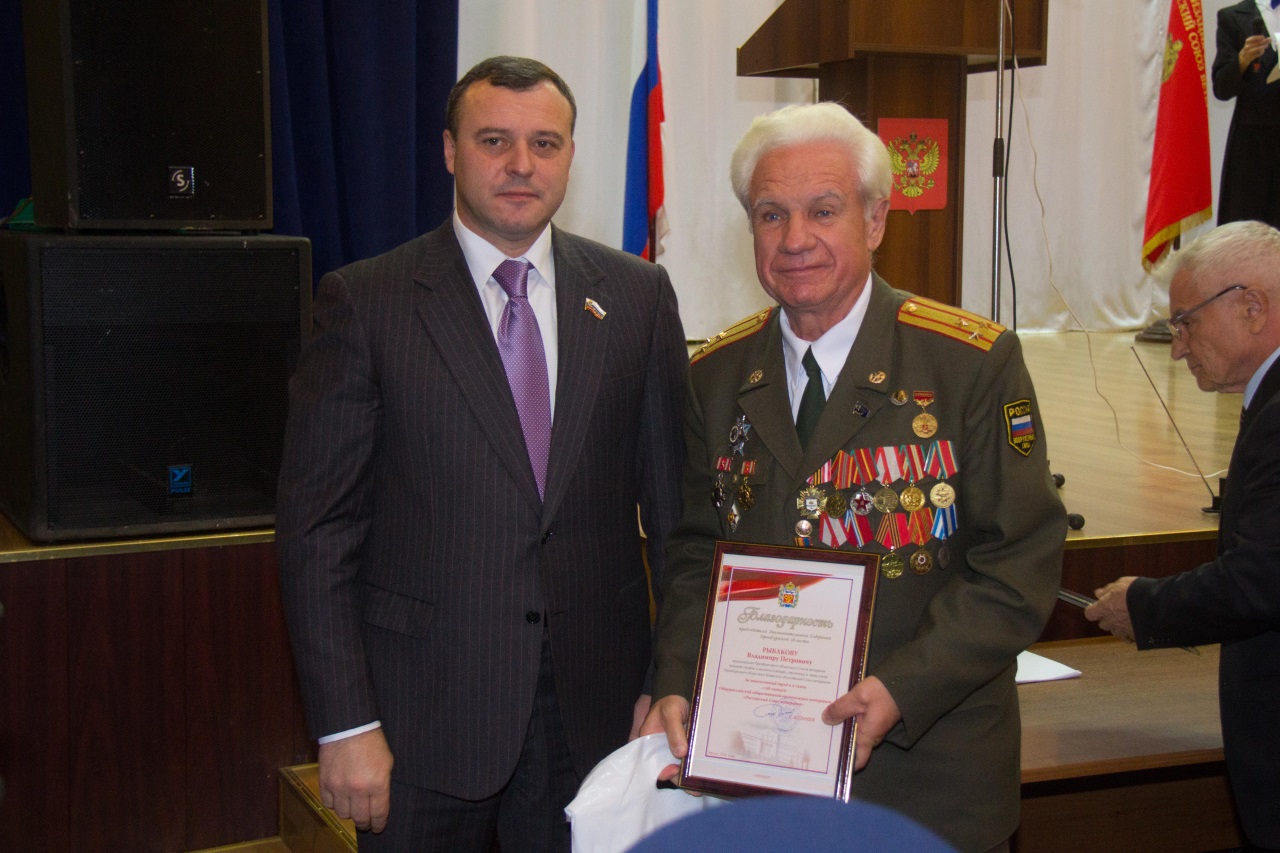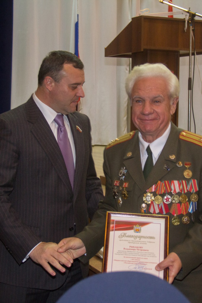 За многолетний добросовестный труд и в связи с 60-летием Российского Союза ветеранов вице-спикер областного парламента Олег Димов от имени председателя Законодательного Собрания Оренбургской области С.И.Грачева вручил Благодарности активистам организации: Анатолию Воронину - заместителю председателя Оренбургского областного Комитета «Российский Союз ветеранов», Федору Денисову - генерал-лейтенанту, активисту ветеранского движения Оренбургской области, Виктору Пономаренко - члену областного комитета «Российский Союз ветеранов», Владимиру Рыбакову - председателю областного Союза ветеранов военной службы и военнослужащих, уволенных в запас, члену областного комитета «Российский Союз ветеранов» и Вячеславу Солдатову - члену областного комитета «Российский Союз ветеранов».