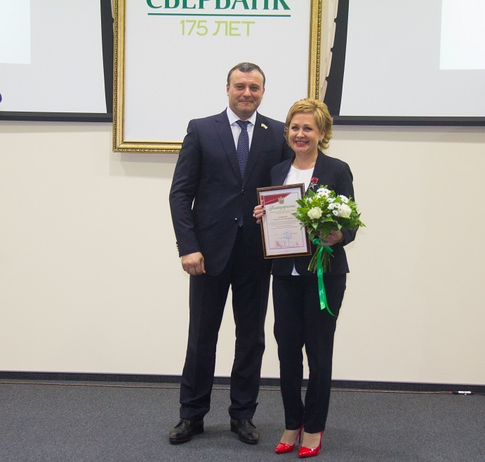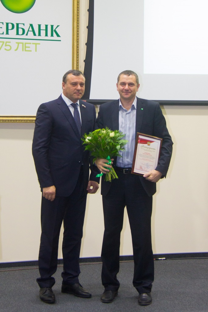 Грамоты Законодательного Собрания Оренбургской области Олег Дмитриевич вручил работникам Оренбургского отделения Сбербанка Сергею Чунихину, Елене Шубиной и Людмиле Клещарь.