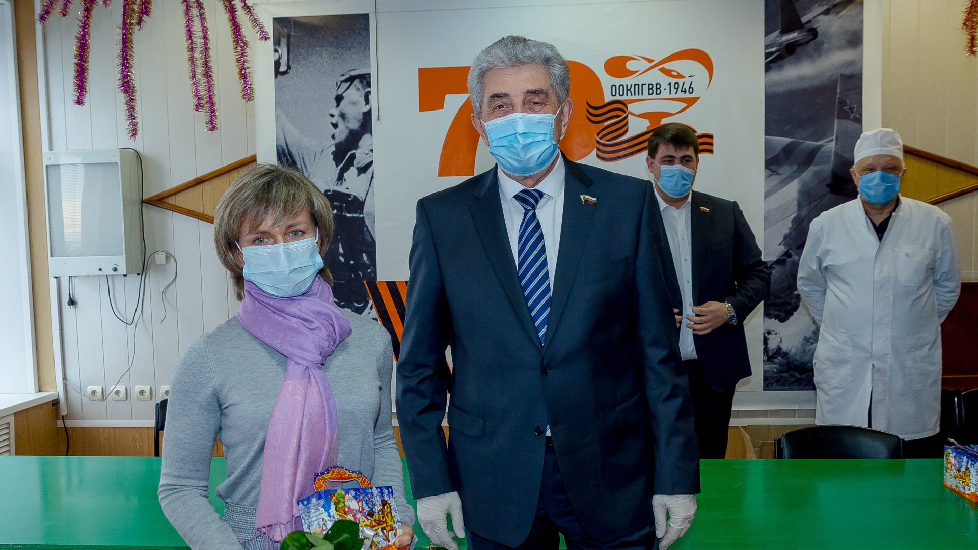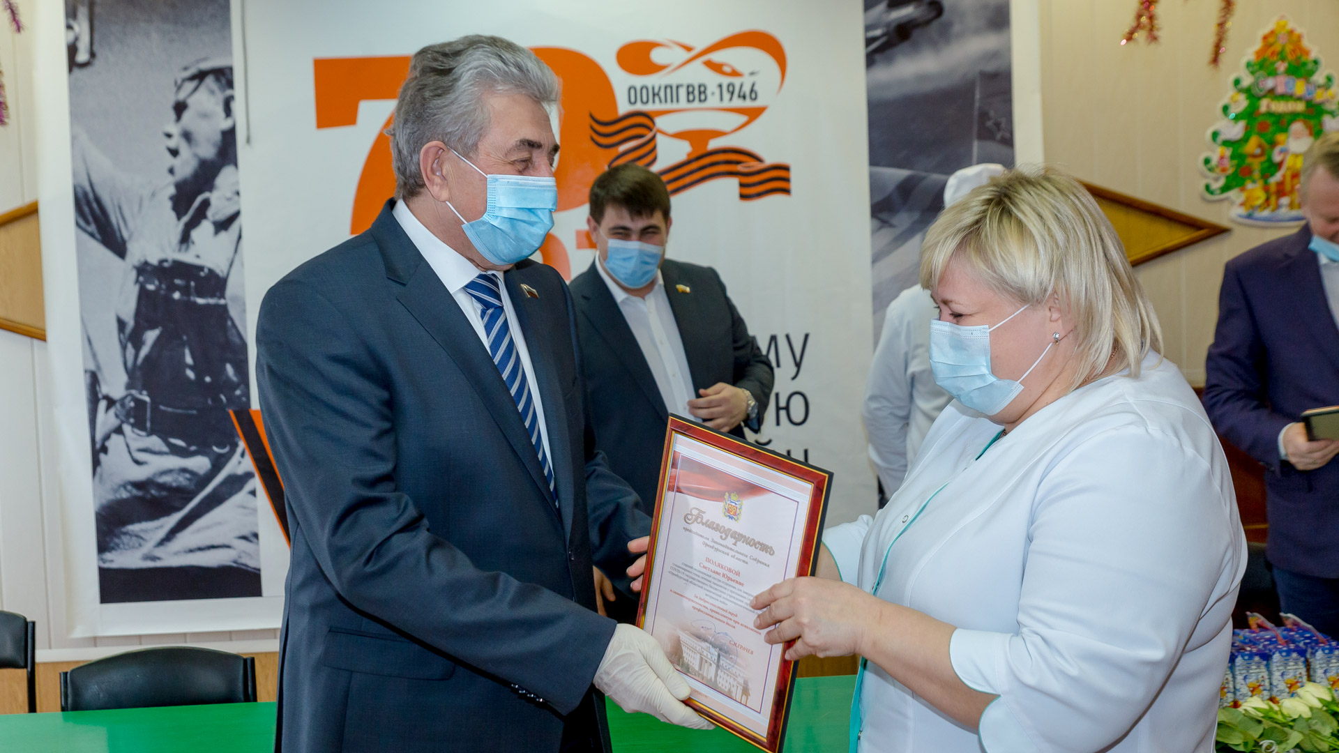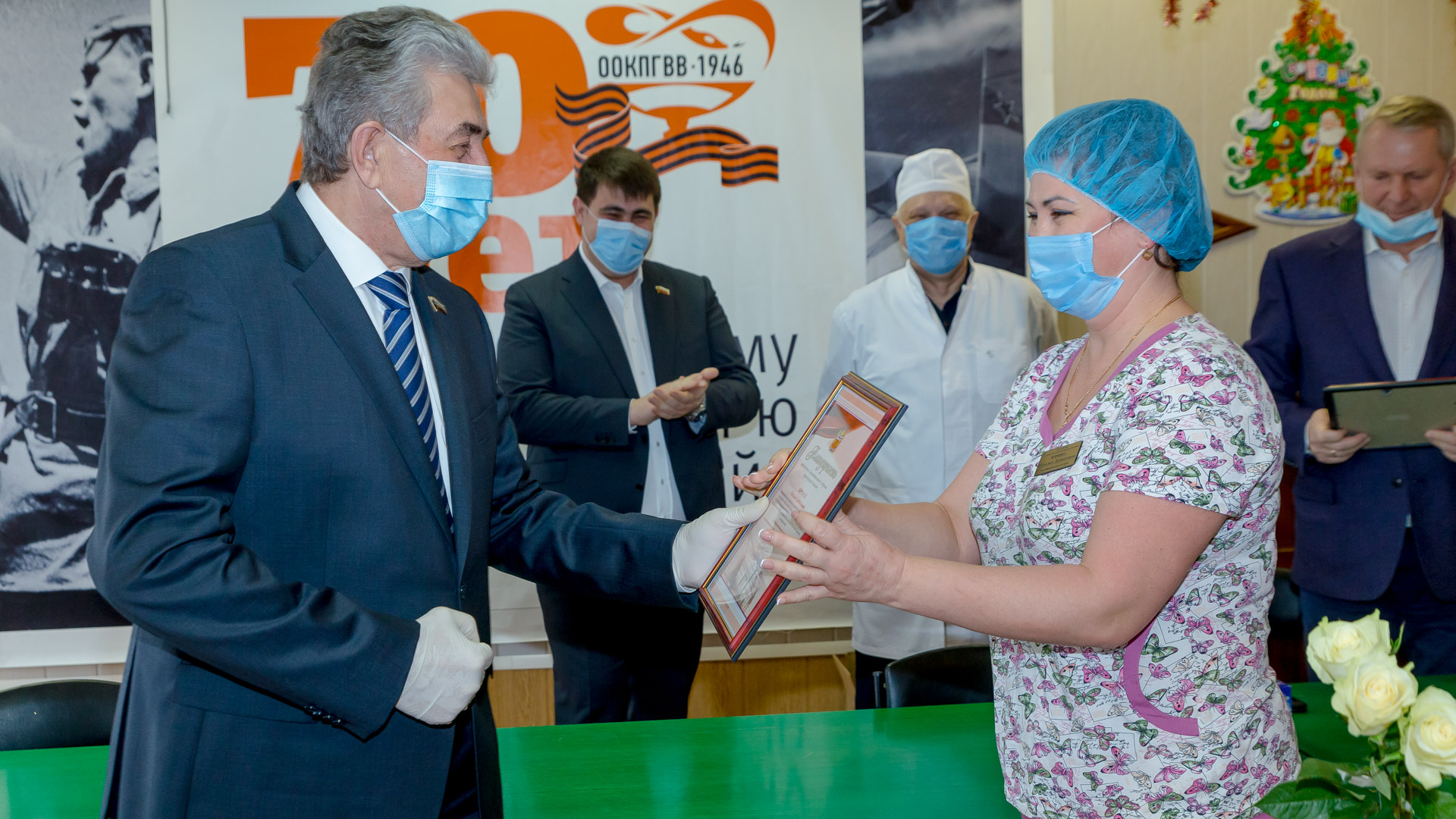 Сергей Грачев вручил врачам и медсестрам госпиталя благодарности председателя ЗС и новогодние подарки.