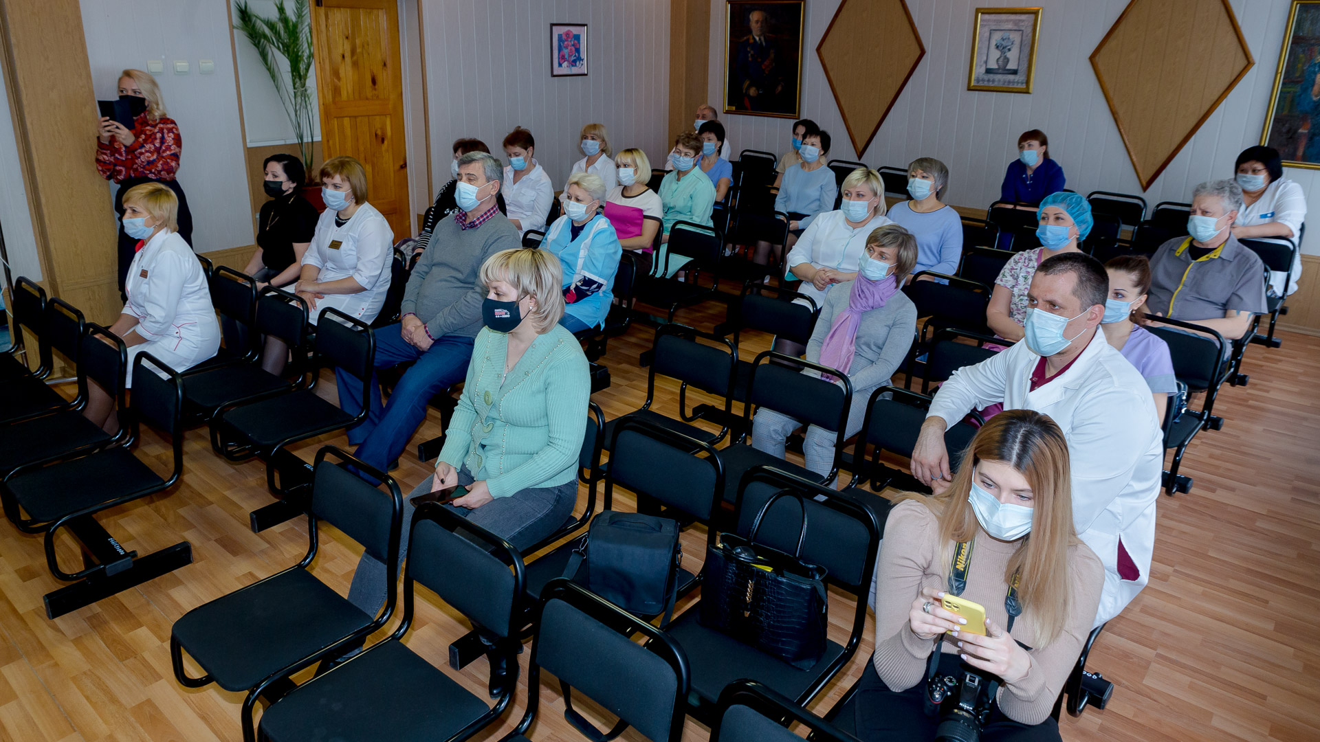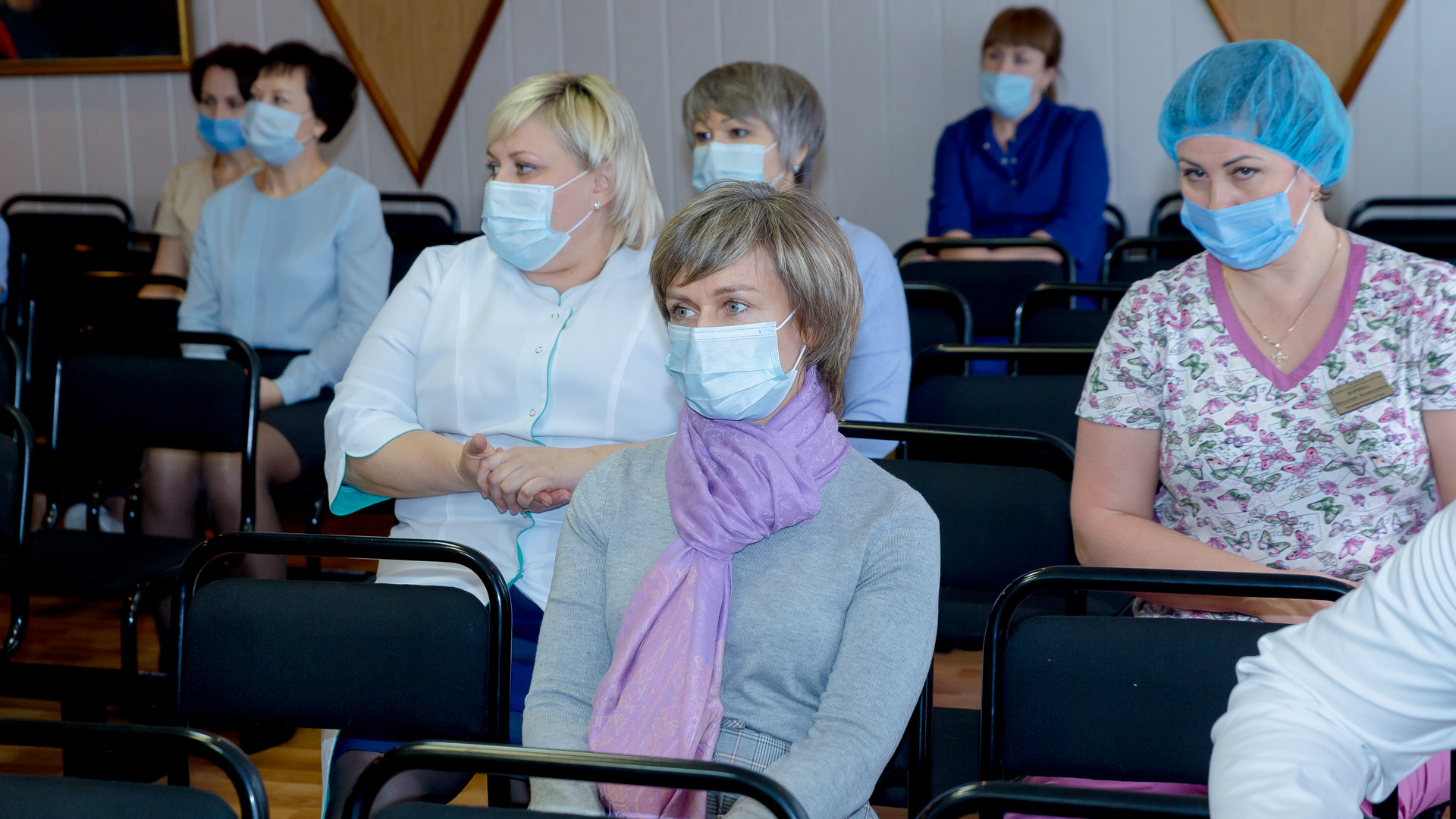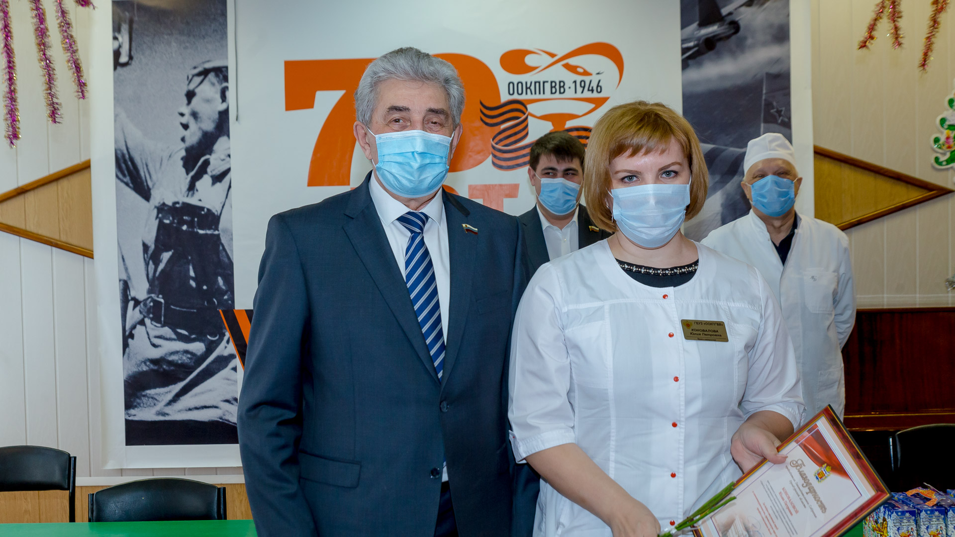 Сергей Грачев вручил врачам и медсестрам госпиталя благодарности председателя ЗС и новогодние подарки.