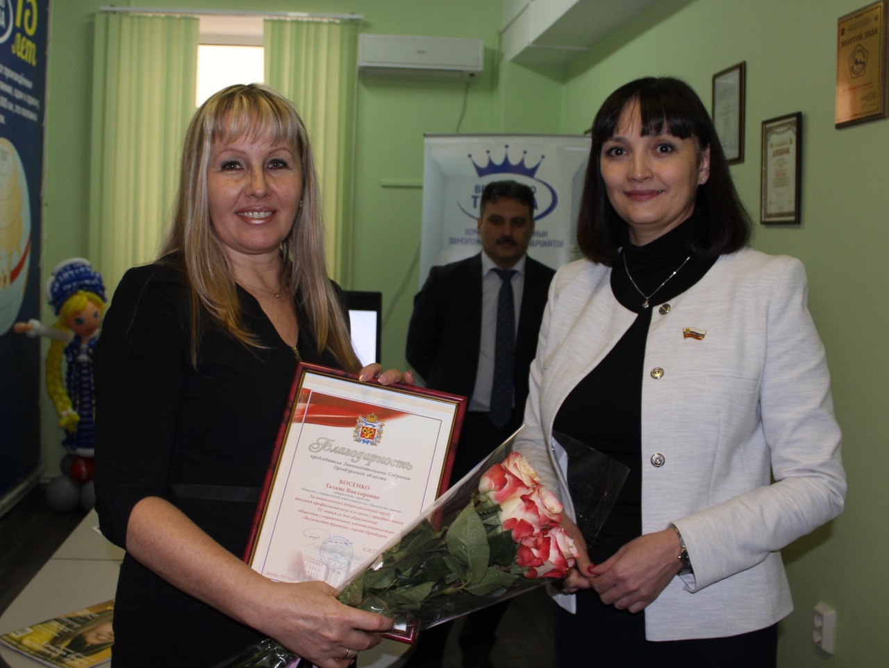 Оксана Набатчикова поздравила коллектив с юбилейной датой и вручила генеральному директору предприятия Галине Косенко Благодарность председателя Законодательного Собрания Оренбургской области.