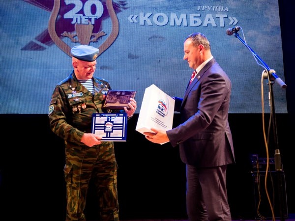 – Почетно в полном зале поздравлять нашу легендарную группу «Комбат», коллектив, который воспитал не одно поколение патриотов, достойных граждан нашей великой страны. Вы являетесь образцом и примером для подражания для многих мальчишек и девчонок. Спасибо за все, что вы для них делаете! Поздравляю вас с праздником и желаю еще больше замечательных песен, прославляющих наше государство и Российскую Армию! – сказал Олег Димов и вручил музыкантам благодарственные письма и памятный подарок.