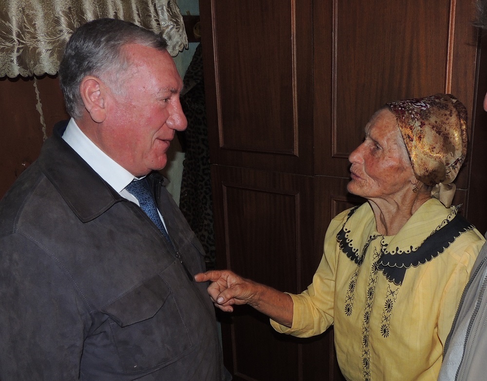 Олег Захарович поздравил Анну Ивановну с Международным днем пожилых людей, вручил цветы и подарок.
