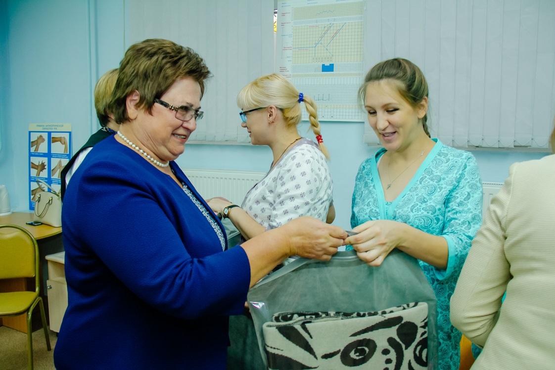 Поздравить мам с рождением малышей пришли председатель комитета Законодательного Собрания по социальной и демографической политике, председатель областного Совета женщин Ольга Хромушина, руководитель Попечительского совета благотворительного фонда «Будущее Оренбуржья» Любовь Берг, министр здравоохранения Галина Зольникова.