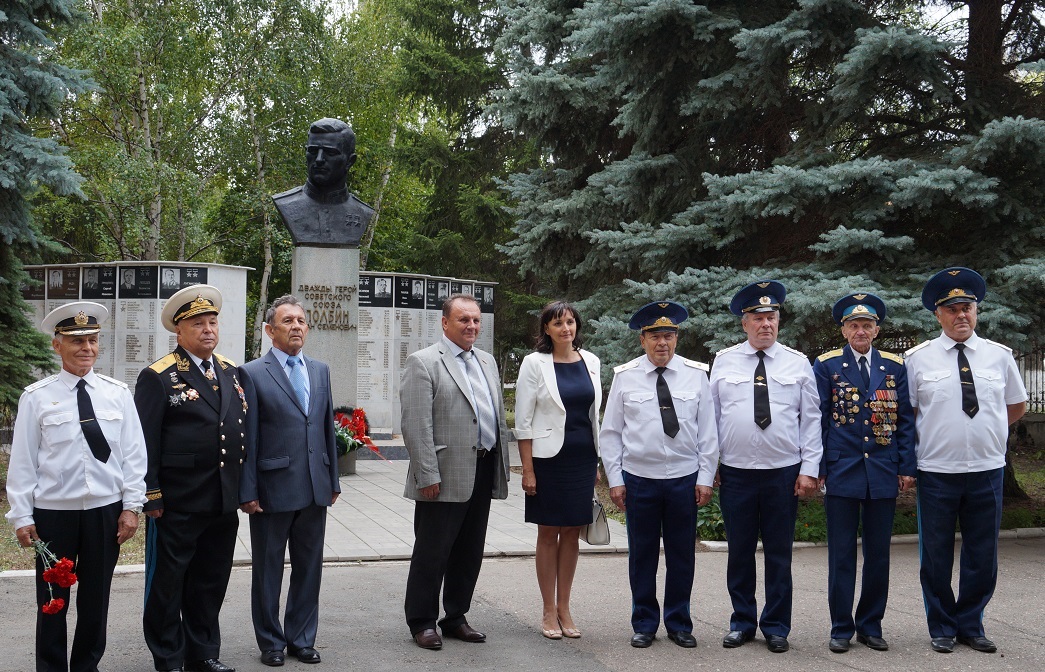 После митинга к бюсту генерал-майора авиации, дважды Героя Советского Союза Ивана Полбина возложили цветы.