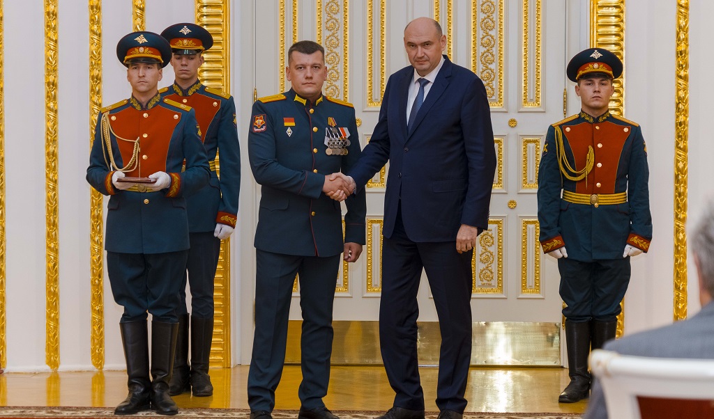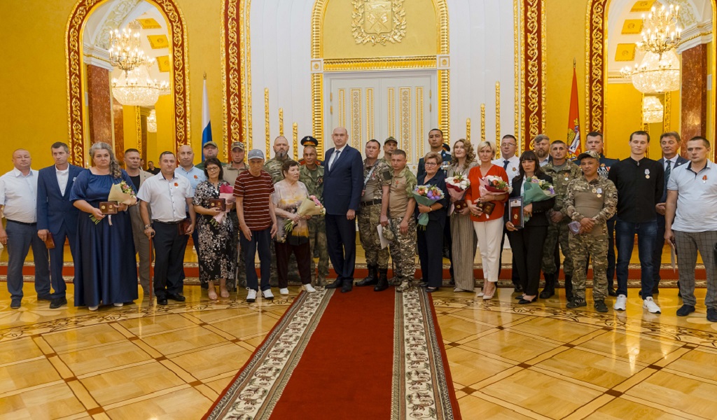 Врио губернатора Евгений Солнцев вручил государственные награды Российской Федерации 18 бойцам специальной военной операции.