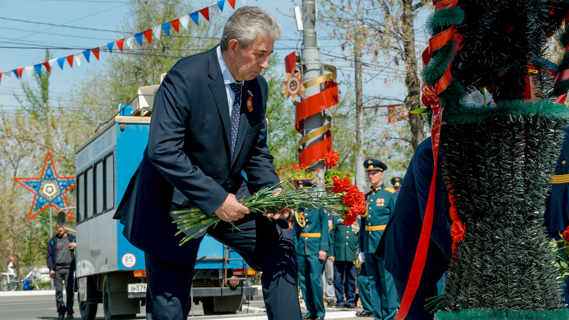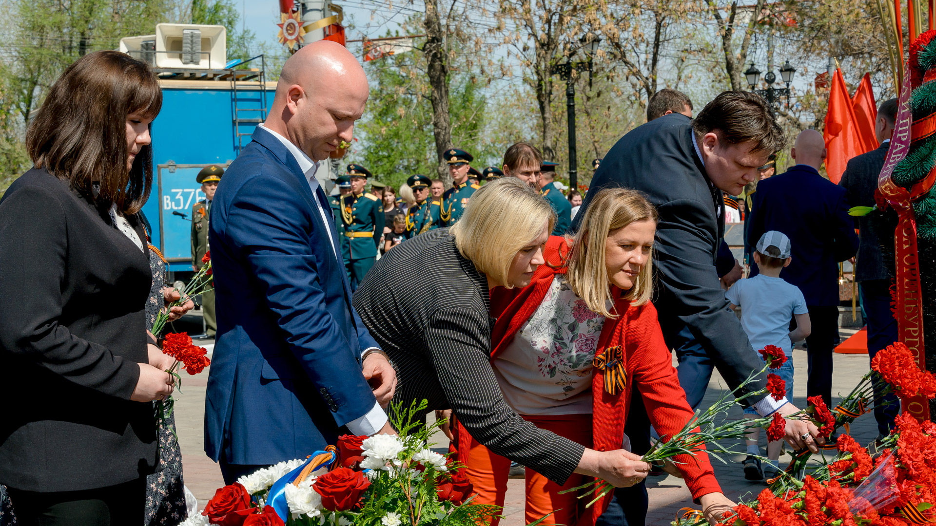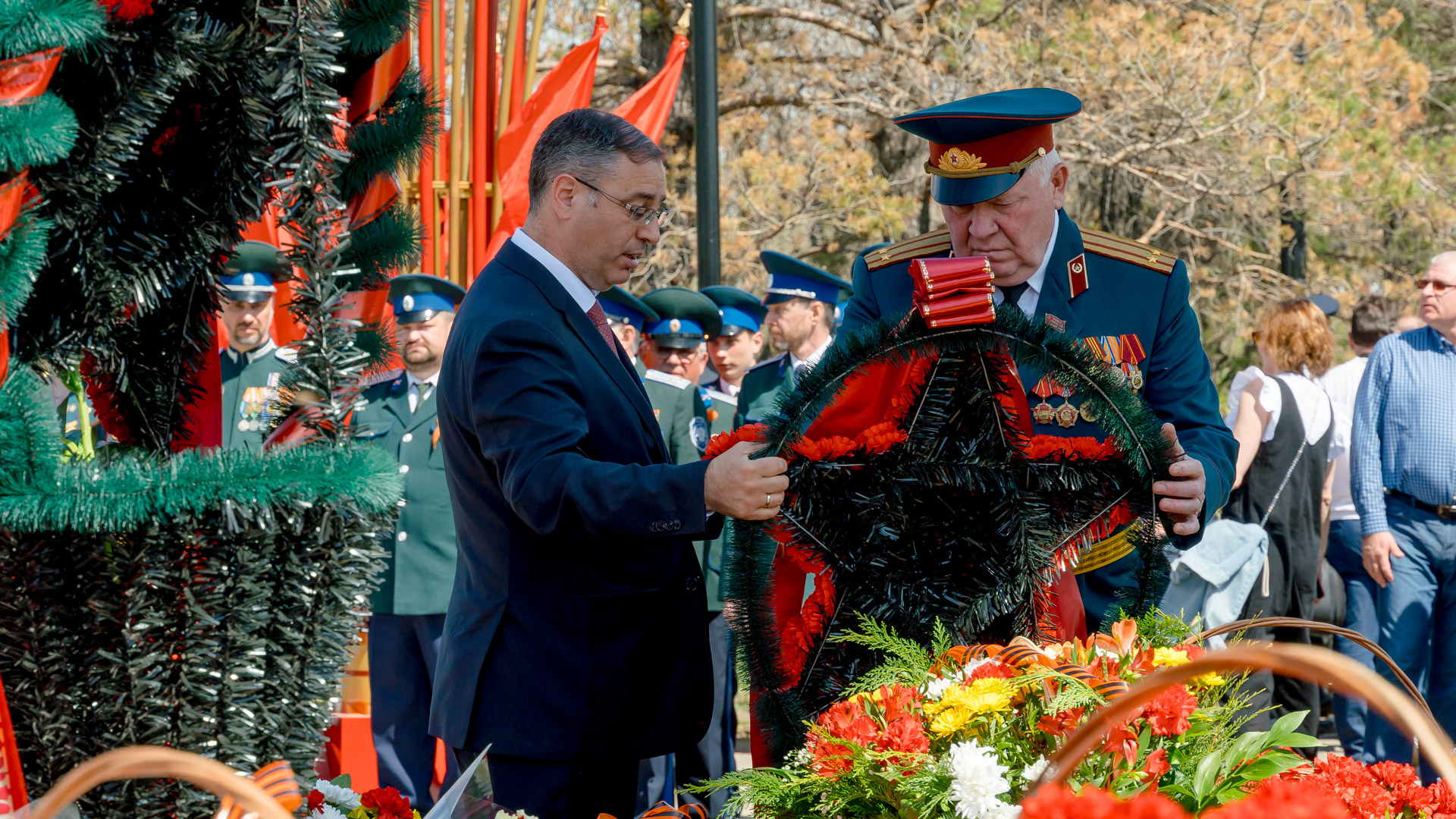 В церемонии приняли участие губернатор региона, члены областного Правительства, городского Совета, представители штаба Армии, военных частей и силовых структур, общественных организаций, ветераны.