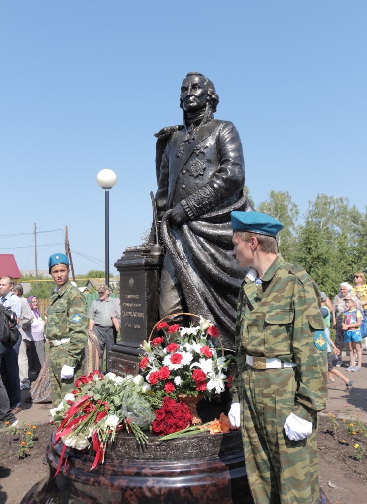 Монумент возведен в честь 275-летия Г.Р.Державина. Автором стал известный скульптор Александр Садовский. Двухметровая фигура прославленного земляка украсила парк в центре села.