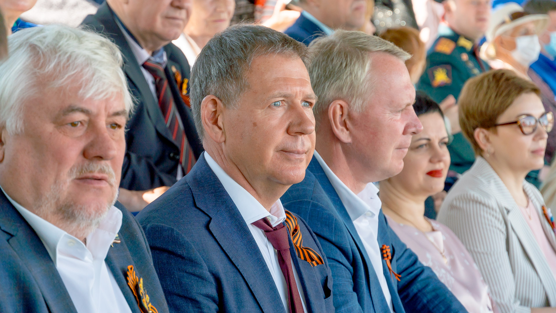 - По социологическим опросам праздник Победы является самым главным праздником для граждан России. И это объяснимо, потому что Великая Отечественная коснулась каждой российской семьи. Победа, достигнутая ценой колоссальных страданий, жертв, подвигов и героизма на фронтах и в тылу, всегда будет великой. И память о ней не может быть короткой. Все личные истории объединяются в нашу общую историю – историю победы над фашизмом. Мы будем помнить об этом всегда и надеюсь, что мир спасенный тоже об этом не забудет. Россия имеет полное моральное право говорить о том, кто внес главный вклад в победу над фашизмом и напоминать об этом другим государствам в случае «забывчивости» и потери памяти у некоторых политиков. День Победы – это наш праздник, самый светлый, трогательный, объединяющий всех граждан России, и мы его никому не отдадим, - подчеркнул председатель Законодательного Собрания Сергей Грачев.