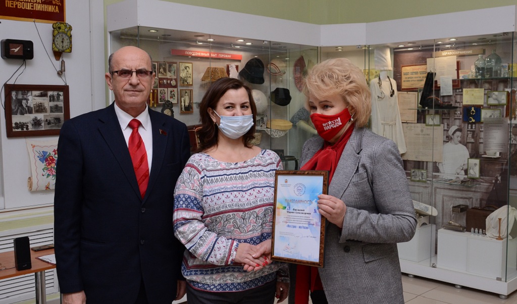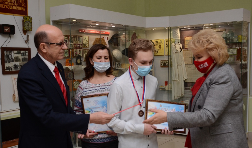 Диплом за работу, приуроченную к 60-летию полета Ю.А.Гагарина в космос, и подарки вручили депутаты Госдумы Нина Останина и Заксобрания Сергей Романенко.