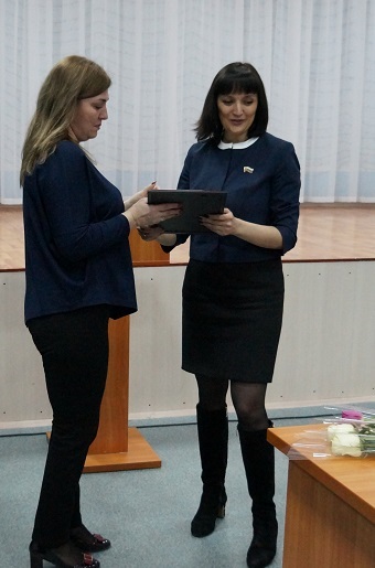 В завершение мероприятия, Оксана Набатчикова вручила Благодарности Законодательного Собрания области преподавателям гимназии. За многолетний добросовестный труд, высокий профессионализм и личный вклад в развитие образования были отмечены учитель русского языка и литературы Лидия Фисенко, учитель химии Елена Колтакова и педагог-библиотекарь Лилия Зубаирова.