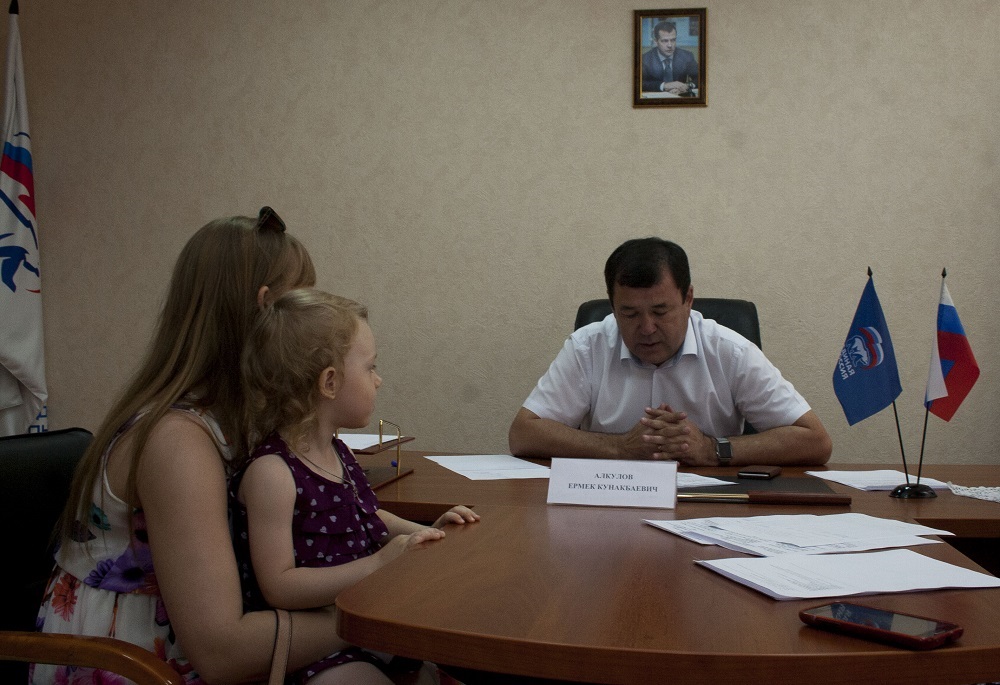Сегодня депутат Законодательного Собрания области Ермек Алкулов работал в региональной общественной приемной председателя партии «Единая Россия» Д.А.Медведева.