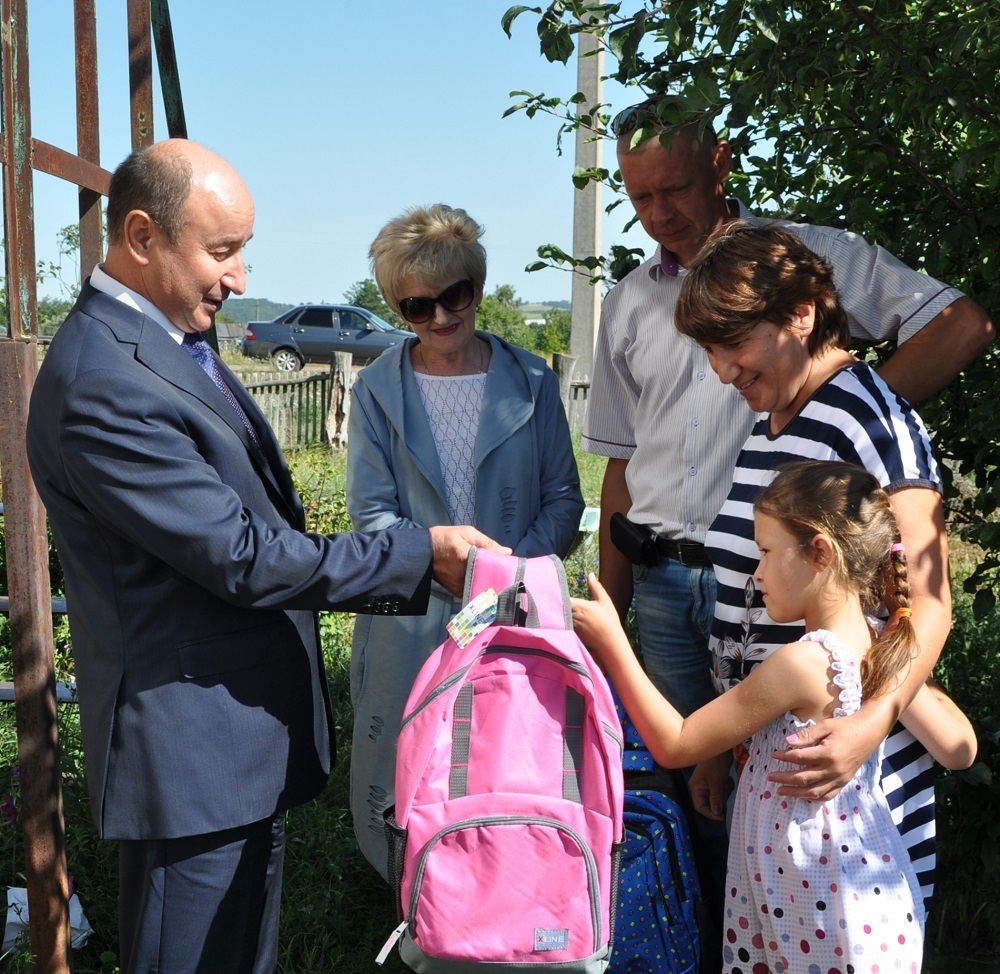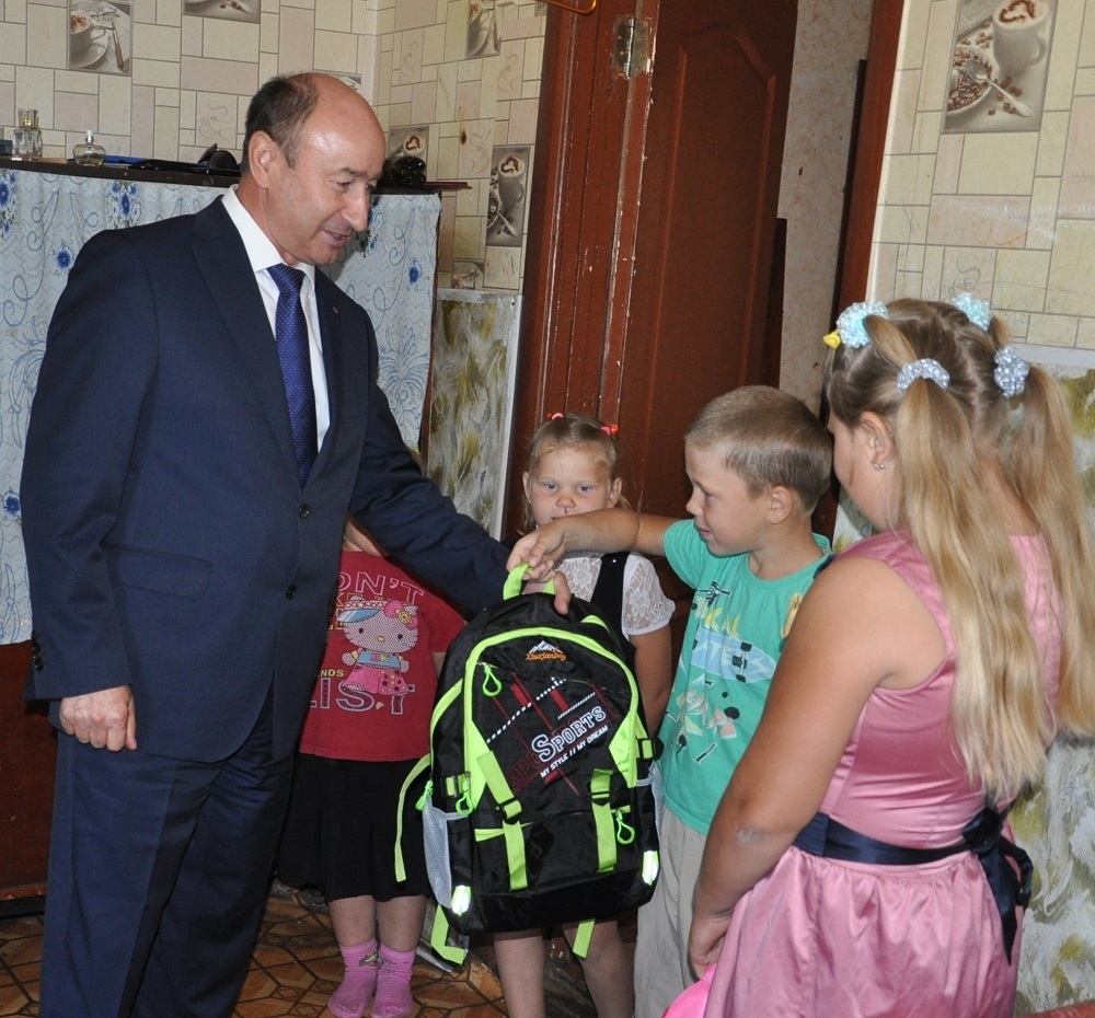 В рамках благотворительной акции «Соберем ребенка в школу» Виктор Купчик вручил школьникам из многодетных семей Воронцовых и Искандировых портфели с письменными принадлежностями.