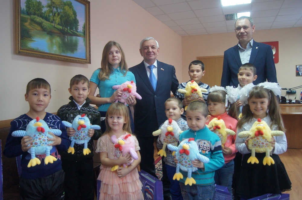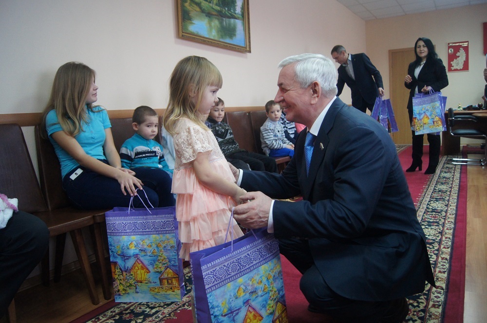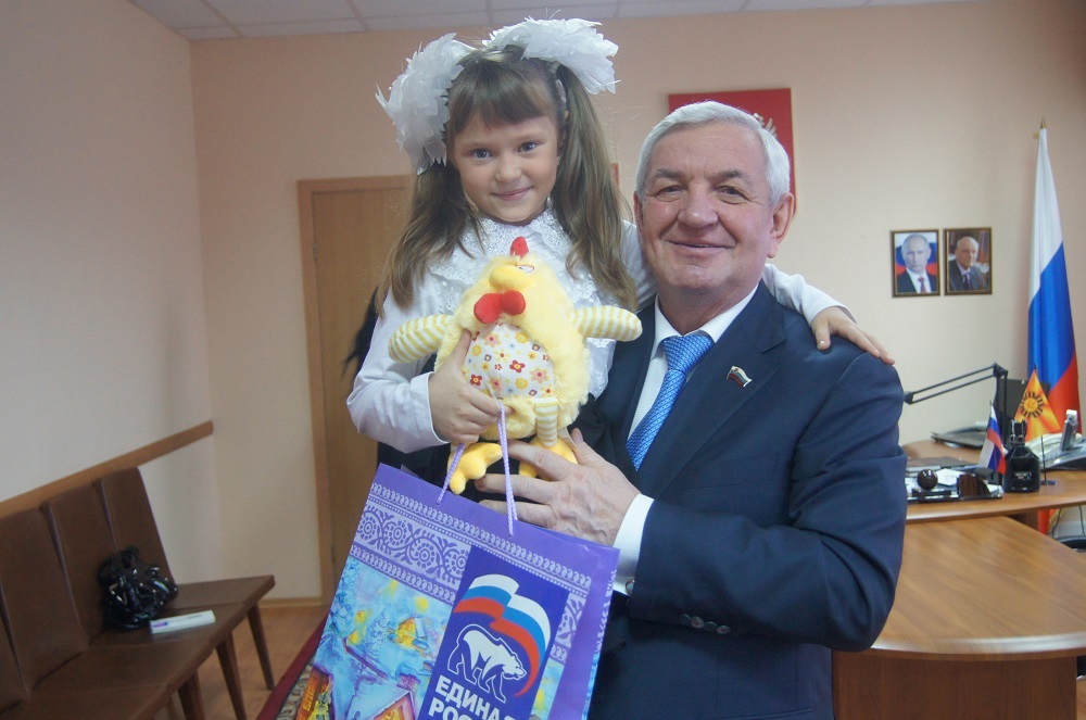 В первой половине дня, в рамках ежегодной акции «Дед Мороз - единоросс» народный избранник вручил новогодние игрушки и сладости детворе из малообеспеченных, многодетных семей. Среди получивших новогодние подарки - многодетная семья Яновских. Шестиклассник Даниль - участник школьной олимпиады по биологии, математике, увлекается историей. Валерия ходит в музыкальную школу, играет на фортепиано. Алина любит рисовать в кружке рисования при детском саду «Лучик». Владислав обожает петь. Евгений Денисович от всей души поздравил ребят с наступающим Новым годом, пожелал им хорошо учиться, быть активными во всем, заниматься спортом, развивать свои способности и таланты и слушаться родителей.
