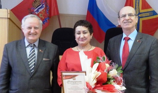 Затем парламентарии поздравили с юбилеем депутата райсовета Наталию Алексееву. Ей вручена Благодарность председателя Законодательного Собрания области С.И.Грачева.