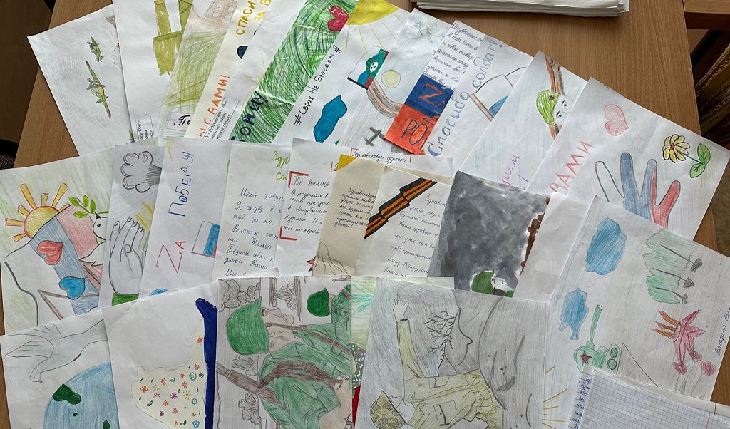В посылки, которые в скором времени отправятся в зону СВО, волонтеры аккуратно вкладывают детские рисунки для поддержания «боевого духа» военнослужащих.