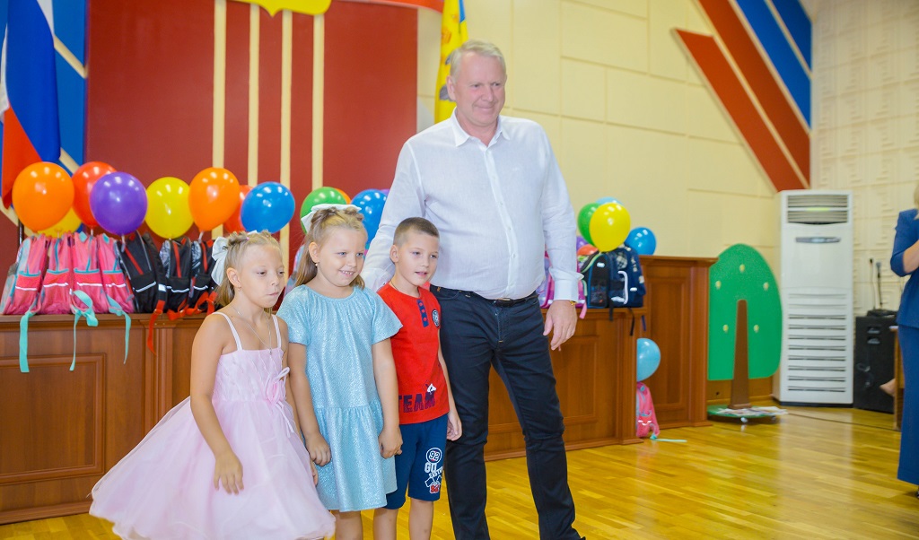 Ребятам из Промышленного района Оренбурга сегодня вручили первые в их жизни школьные рюкзаки.