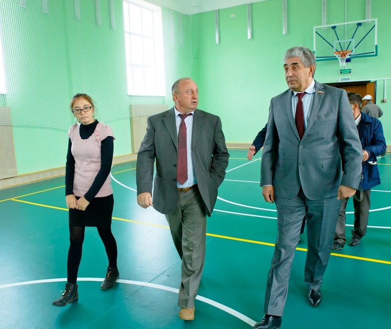 Следующей точкой маршрута председателя Законодательного Собрания стала средняя общеобразовательная школа в селе Каменка. В этом учебном году школа получила долгожданный подарок – реконструированный в рамках соответствующего проекта партии «Единая Россия» спортивный зал.
