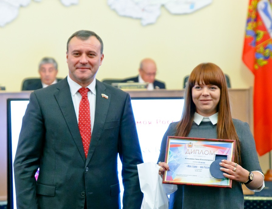 Сегодня в Законодательном Собрании торжественно подвели итоги XII областного конкурса молодежных авторских проектов «Моя страна – моя Россия» и наградили победителей.