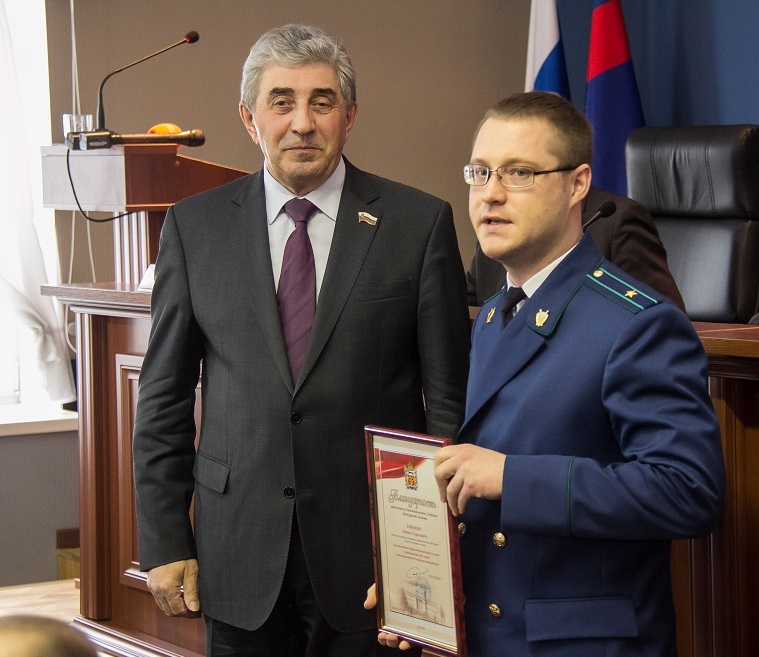 Ряду сотрудников прокуратуры, показавшим отличные результаты в работе, вручены Благодарности председателя Законодательного Собрания.