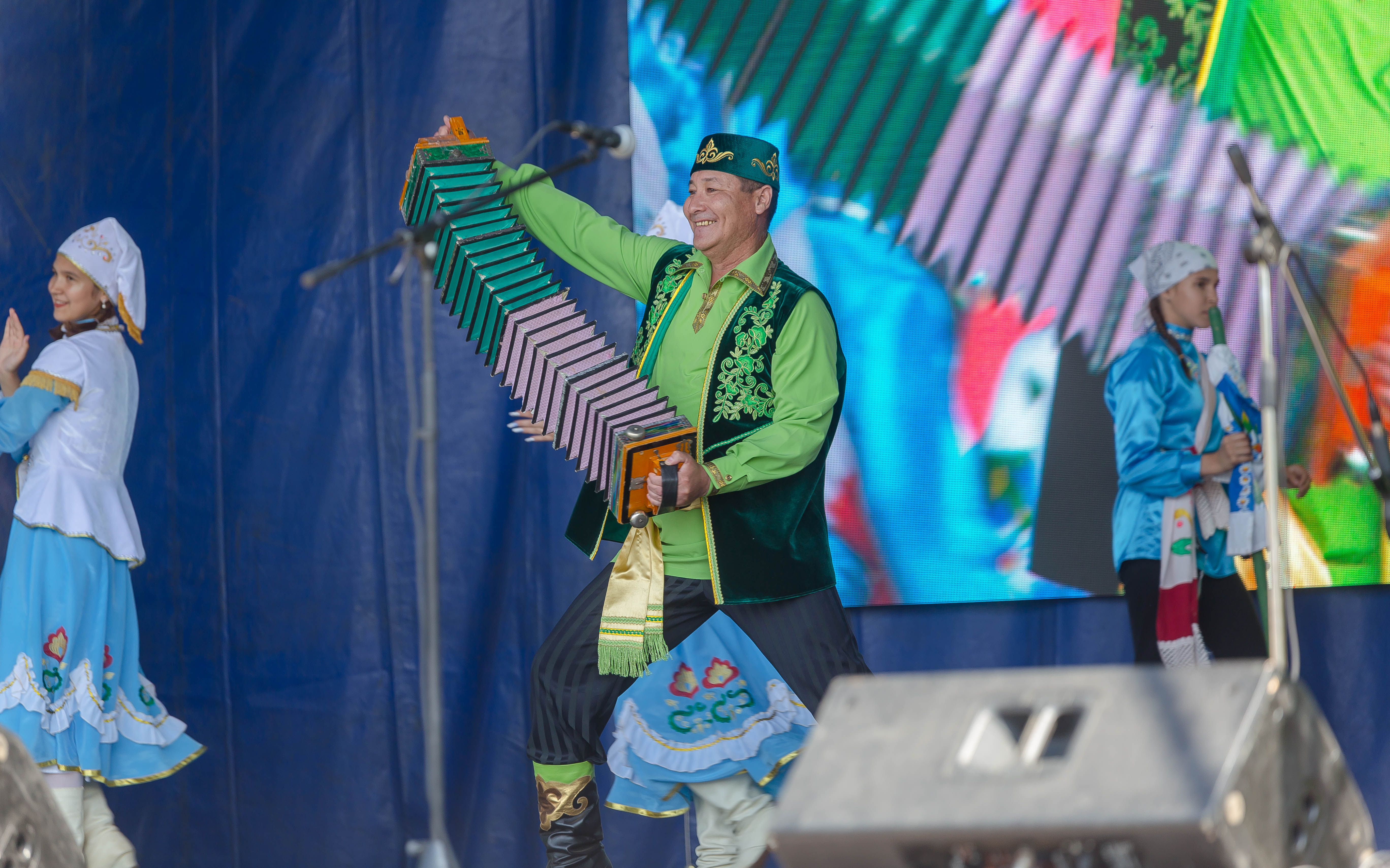 Программа праздника включала в себя выступления лучших татарских фольклорных коллективов Оренбургской области, Бавлинского района Республики Татарстан, национальные игры и состязания, борьбу корэш, конные скачки.