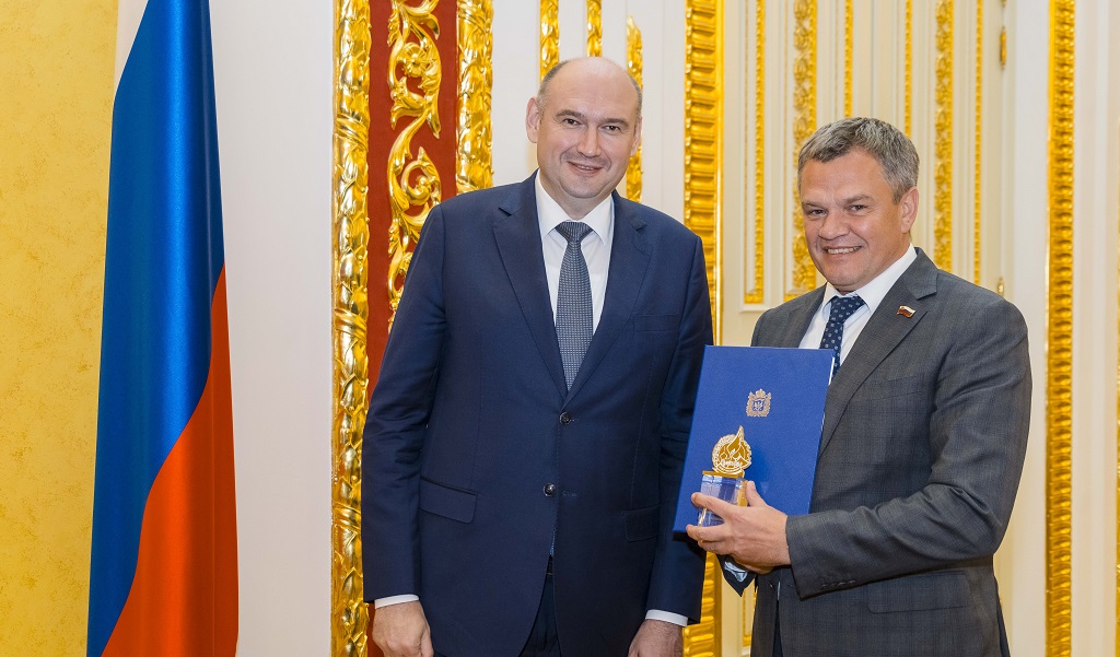 В рамках мероприятия также прошло вручение наград Российского союза промышленников и предпринимателей. Вице-спикер регионального парламента, председатель Совета Торгово-промышленной палаты региона Александр Куниловский был награжден Почетной грамотой РСПП за многолетнее и плодотворное сотрудничество.