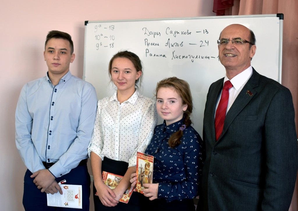 Школьники голосованием определили тройку наиболее активных участников встречи, ими стали Риналь Аитов, Ралина Хисматуллина и Дарья Садыкова. Депутат подарил ребятам сувениры и призвал быть активными гражданами своей страны, патриотами родного края.