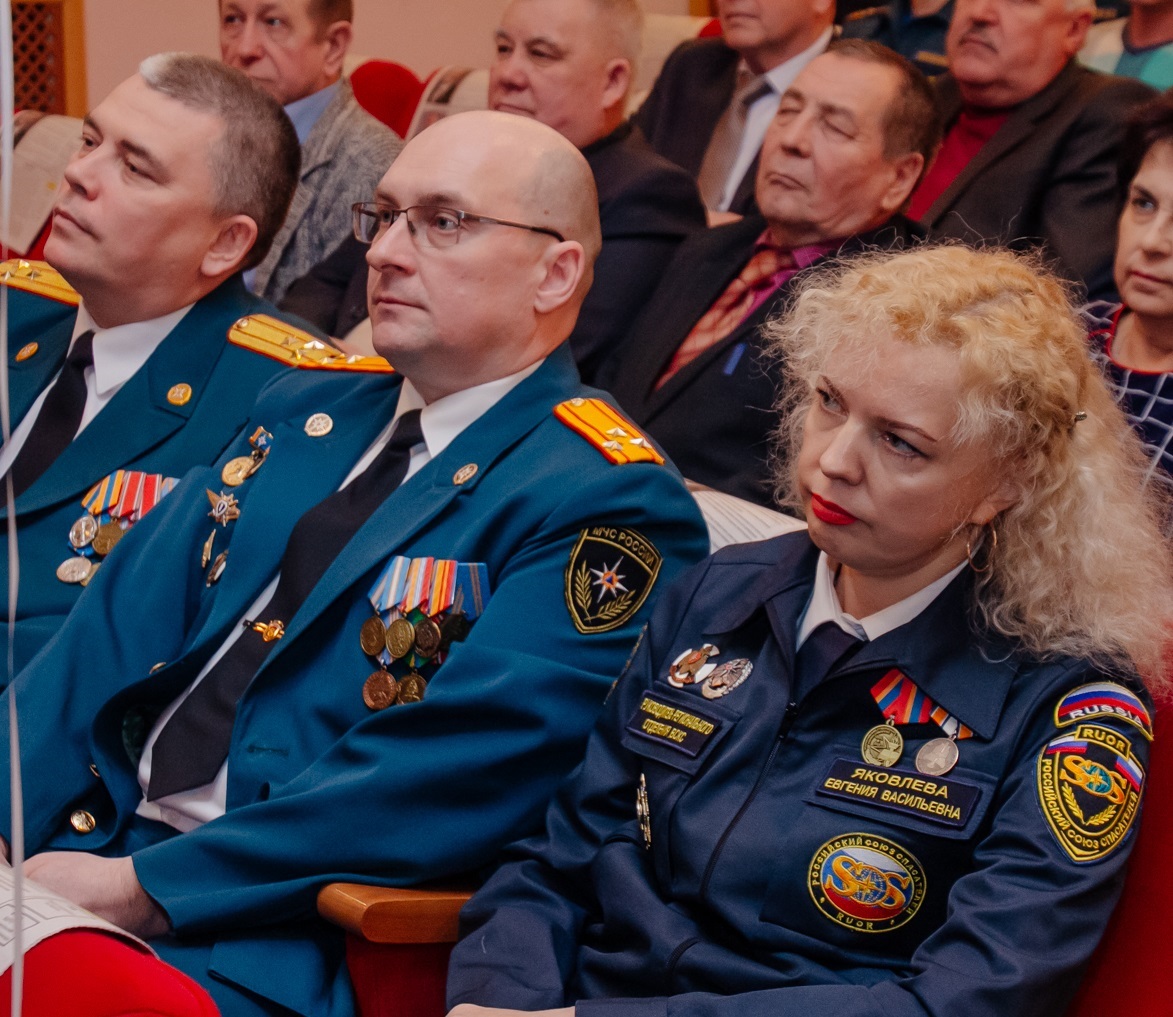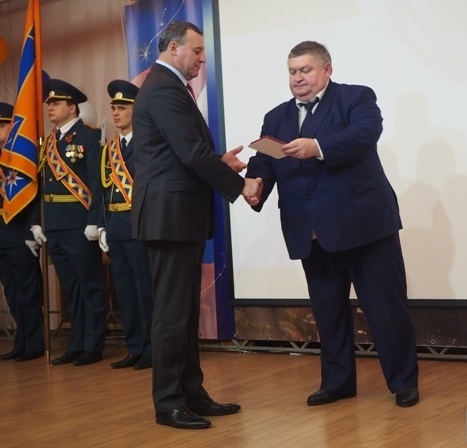 Ветераны и действующие сотрудники служб спасения были награждены ведомственными медалями и нагрудными знаками.