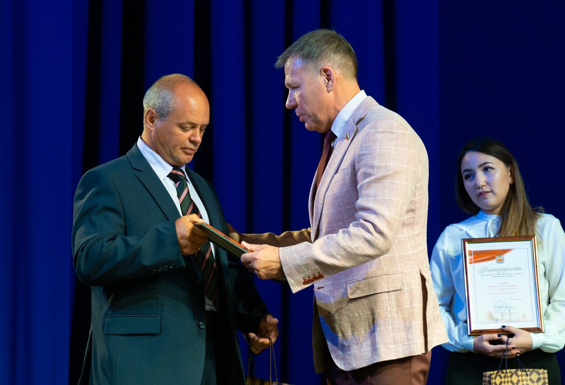 От имени председателя Законодательного Собрания Александр Трубников вручил Благодарности главному инженеру ГУП Оренбургской области «Оренбургремдорстрой» Александру Улитину и ветерану строительной отрасли Виталию Сучкову.