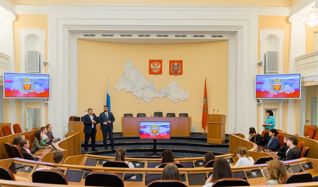На встречу с ребятами пришли депутаты фракции ЛДПР Максим Щепинов и Иван Дубинин. Лекционными аудиториями стали малый зал заседаний Законодательного Собрания и Колонный зал.