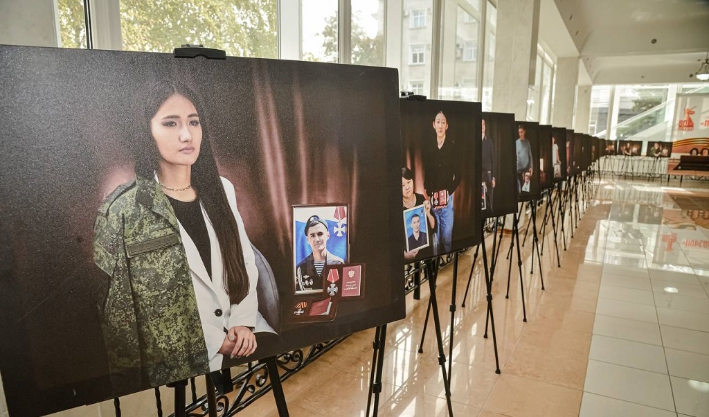 Здесь можно увидеть портреты героев, которые отдали свои жизни за Родину, их матерей, жен, детей. Это инициатива семей погибших воинов общественного объединения «Память».