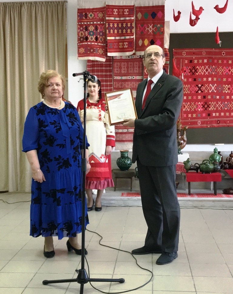 Сергей Романенко, отметил роль галереи «Оренбургский пуховый платок» в популяризации декоративно-прикладного искусства и народных художественных промыслов. За активное участие в становлении и успешной деятельности галереи парламентарий вручил Наталье Харциенко Благодарность председателя Законодательного Собрания С.И.Грачева.