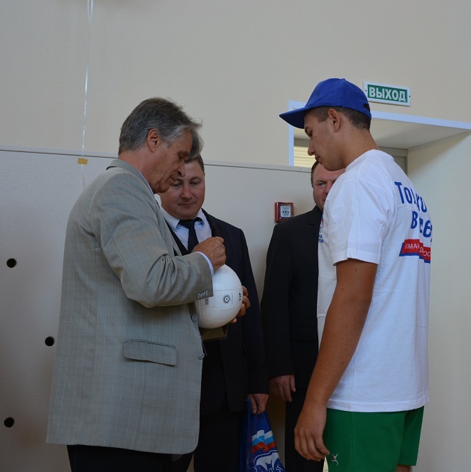 Затем Александр Жарков совместно с заместителем министра образования Эльвирой Масликовой и главой района открыли в Новомусинской средней школе спортивный зал, который был капитально отремонтирован в рамках проекта партии «Единая Россия» «Детский спорт».