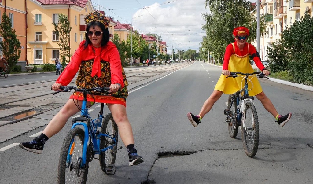 Более 500 новотройчан выкатились со своими двухколесными друзьями в центр города. Практически каждый был в костюме сказочного персонажа, героя мультфильма или представителя рабочего класса, символа Новотроицка.
