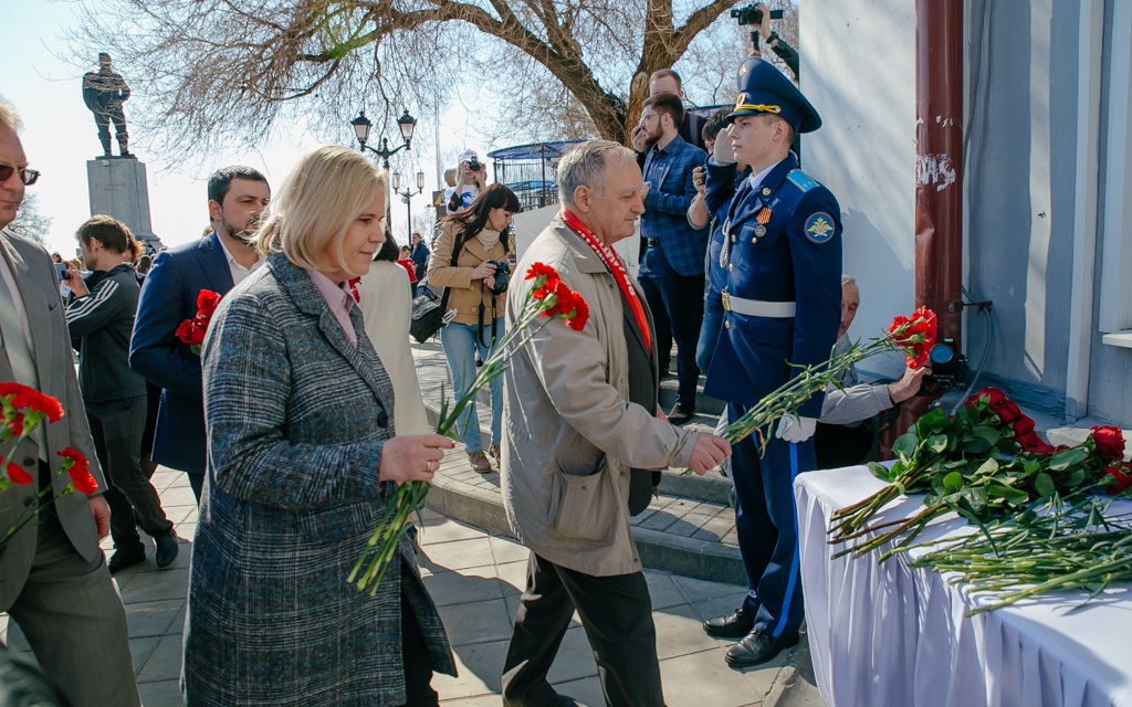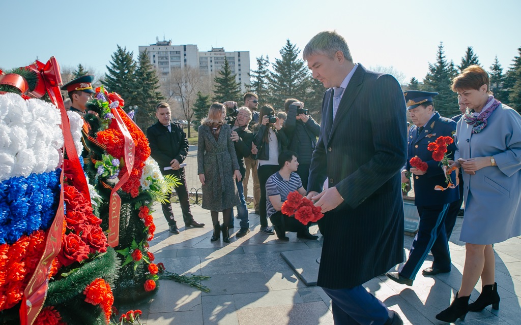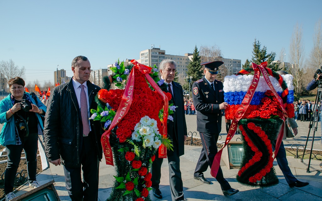 Участники традиционного торжественного митинга в областном центре, среди которых врио губернатора региона Денис Паслер, председатель Законодательного Собрания Сергей Грачев, вице-спикер областного парламента Олег Димов, депутаты ЗС Сергей Бабин, Евгений Сусоев, Оксана Набатчикова, Татьяна Иванова, Татьяна Казармщикова, Денис Зеленцов, Владимир Новиков собрались у памятника первому космонавту планеты, выпускнику оренбургской «летки» Юрию Гагарину.