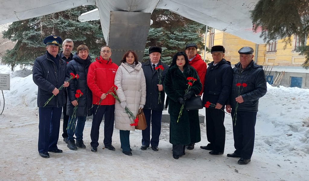 Участники «круглого стола» возложили цветы к самолету МИГ-15, на котором летал Юрий Гагарин. Побывали у стелы героям – выпускникам летного училища.