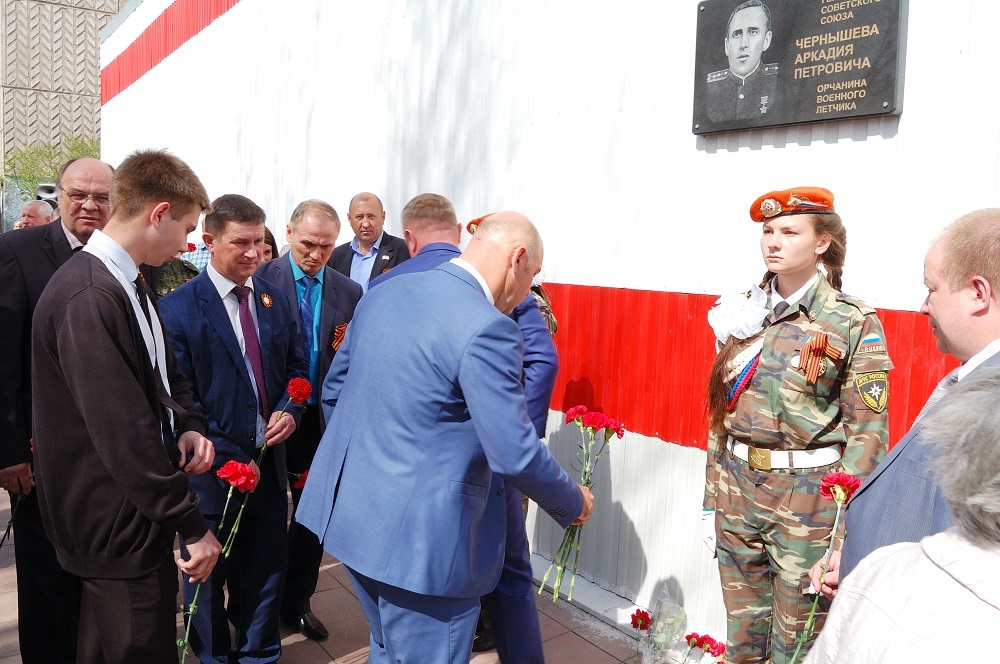 Депутаты областного парламента возложили цветы к мемориальной доске памяти героя-земляка, военного летчика А.П.Чернышева. Звучали стихи и песни о войне.